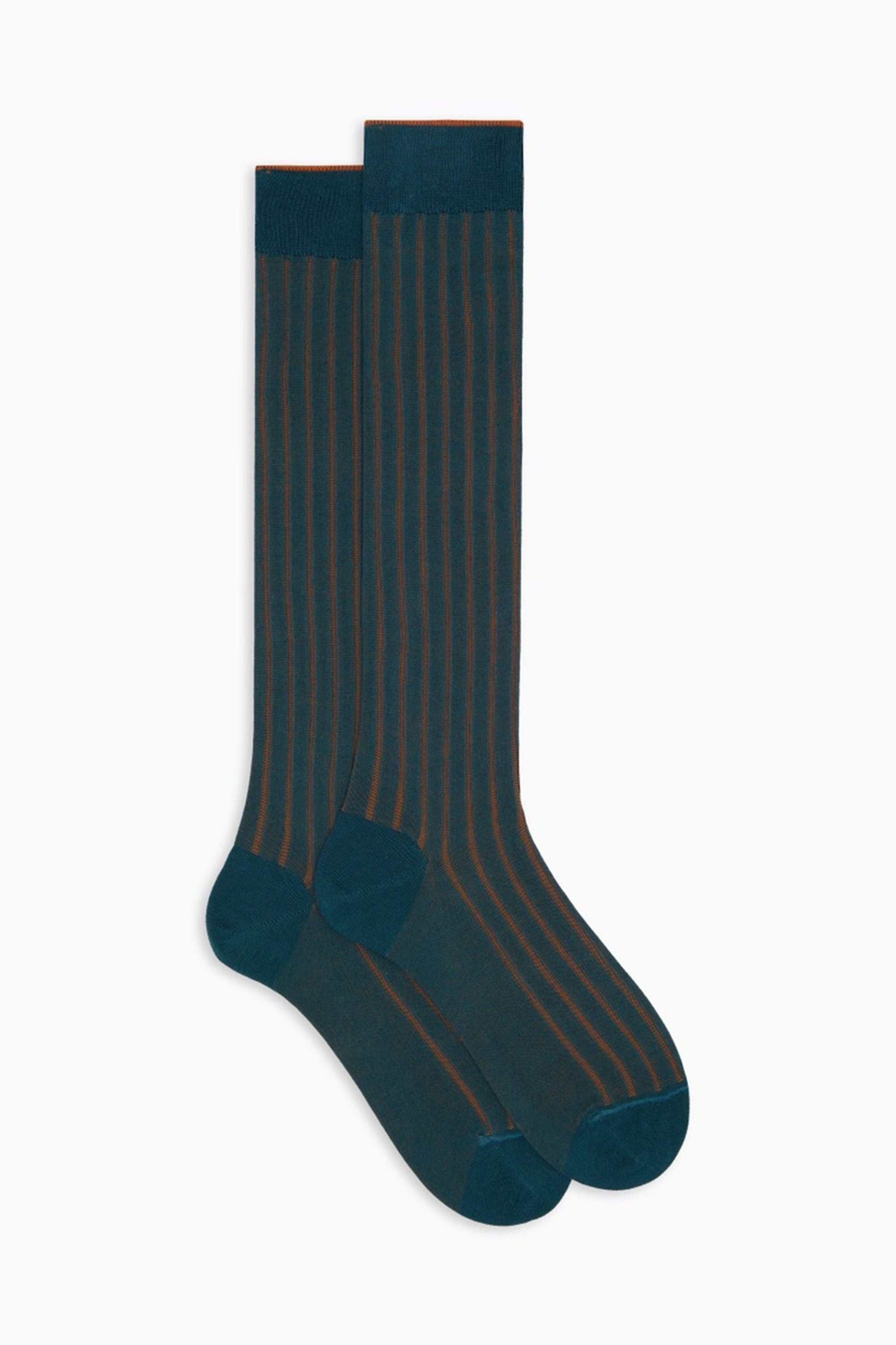Calze lunghe vanisè da uomo realizzate in Italia in morbido cotone elasticizzato. L'iconica trama a coste larghe, nei toni del verde, rende queste calze un vero dettaglio di stile e personalità. Perfette da abbinare ad ogni tipo di look. Sinonimo di qualità ed eccellenza italiana dal 1927.