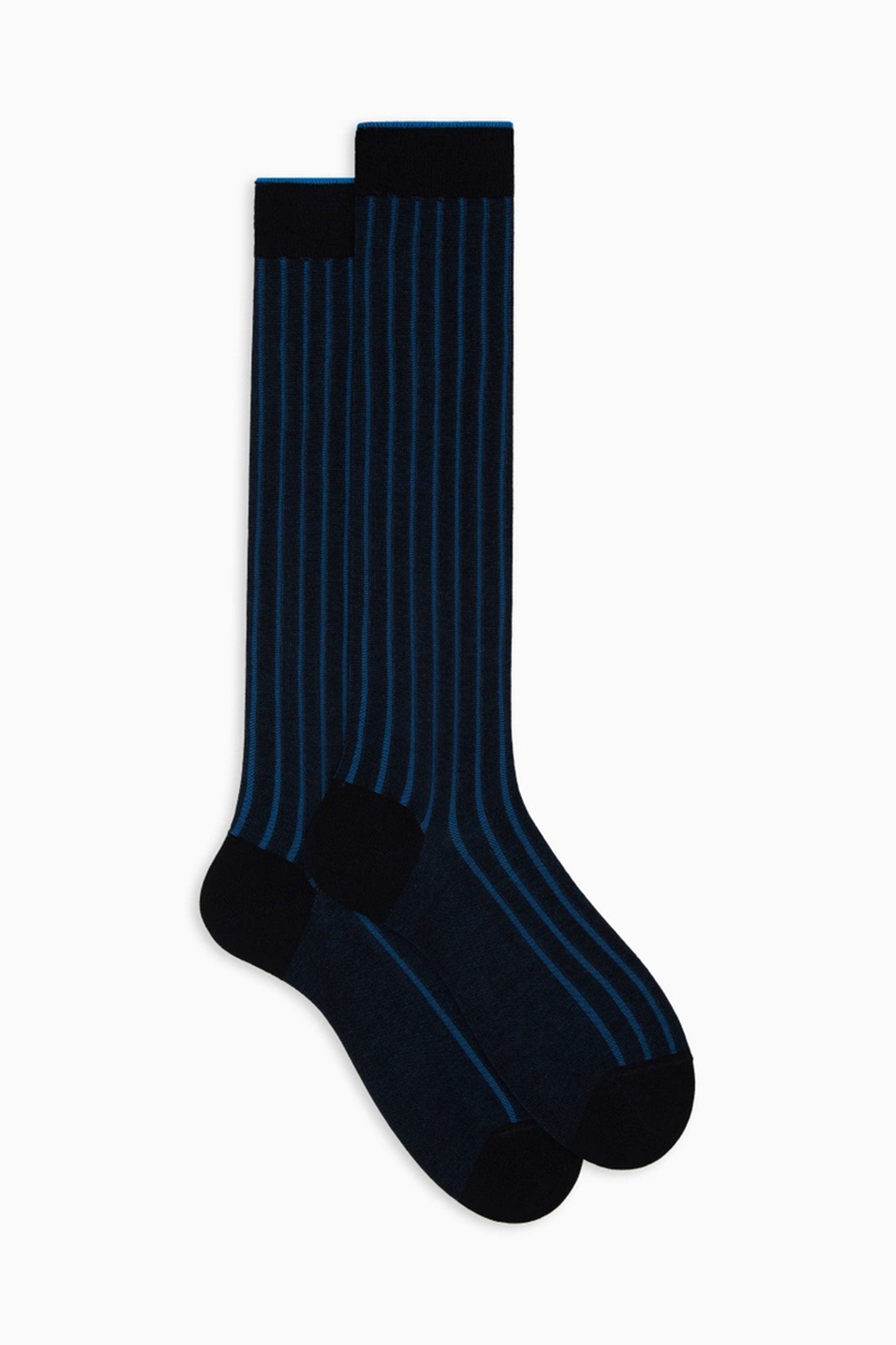 Calze lunghe vanisè da uomo realizzate in Italia in morbido cotone elasticizzato. L'iconica trama a coste larghe, nei toni del blu, rende queste calze un vero dettaglio di stile e personalità. Perfette da abbinare ad ogni tipo di look. Sinonimo di qualità ed eccellenza italiana dal 1927.