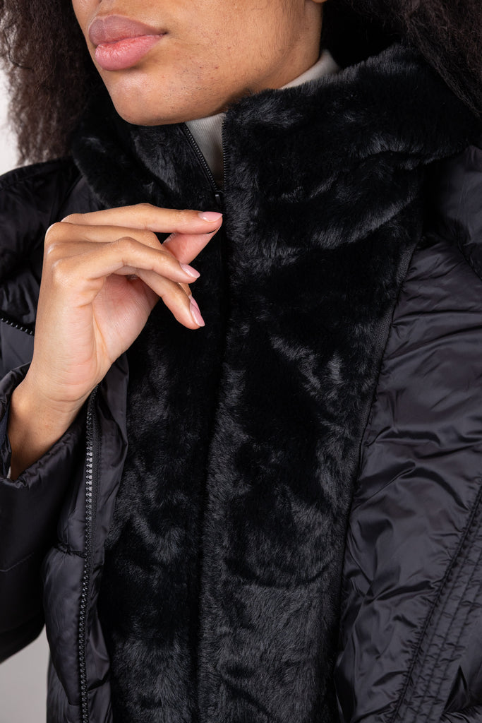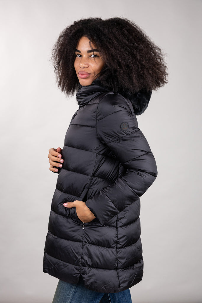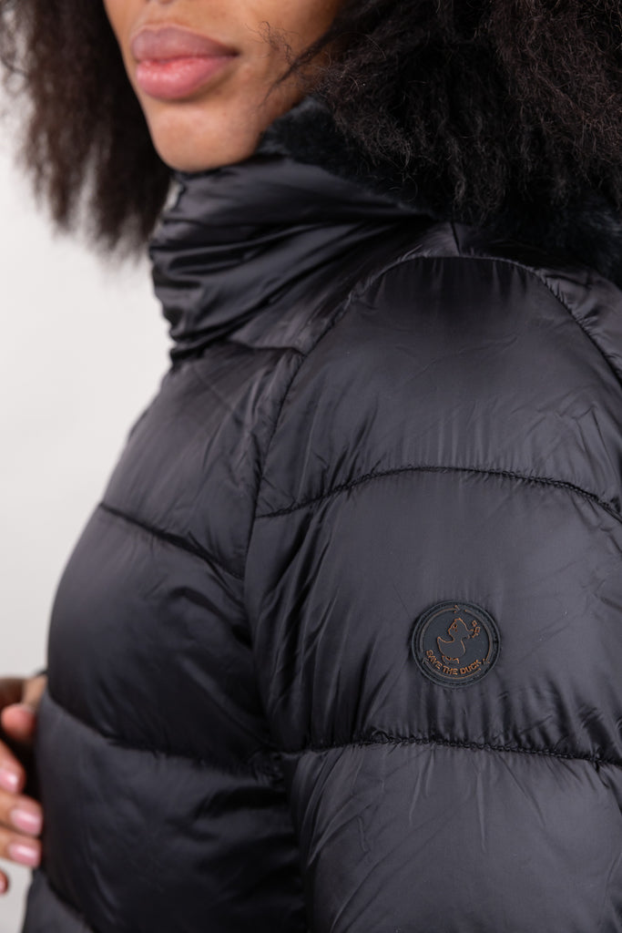 Matilda è il piumino di media lunghezza svasato di Save the Duck caratterizzato da pettorina e cappuccio in eco-pelliccia staccabile. Realizzato in un materiale idrorepellente e resistente, garantisce protezione dall'acqua e dall'aria. L'imbottitura in plumtech, piuma sintetica riciclata, è un'ottima alternativa al vero piumino e garantisce un perfetto isolamento termico. Caldo e comodo, il capo ideale per affrontare l'inverno con stile! Adatto anche agli inverni più rigidi!