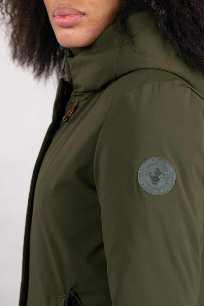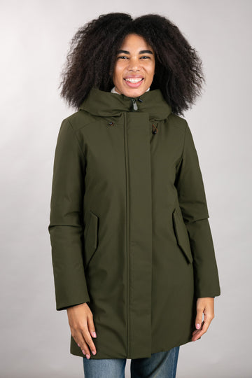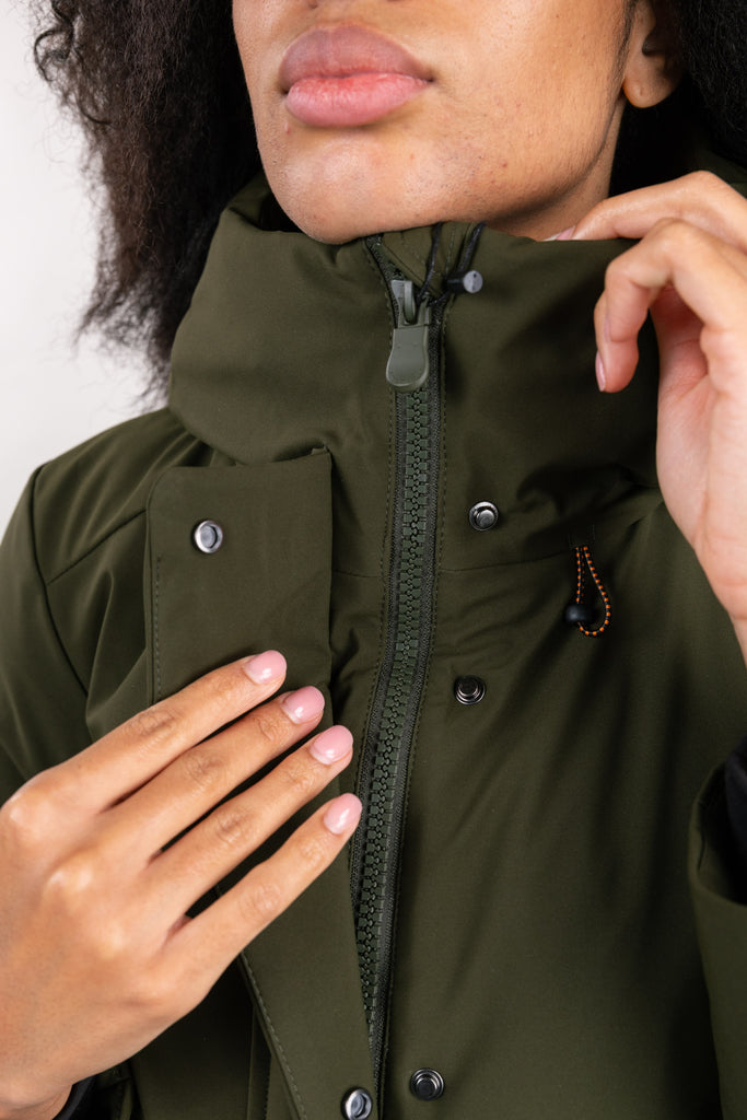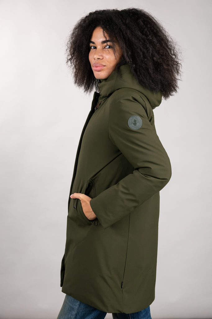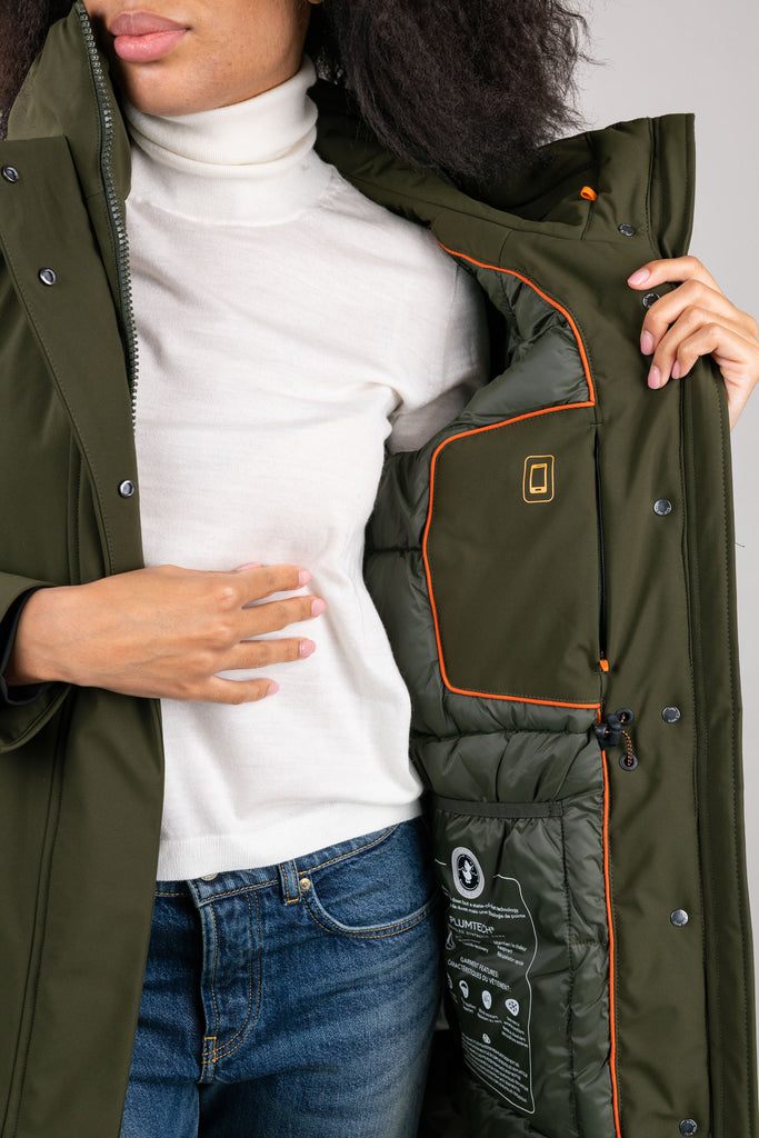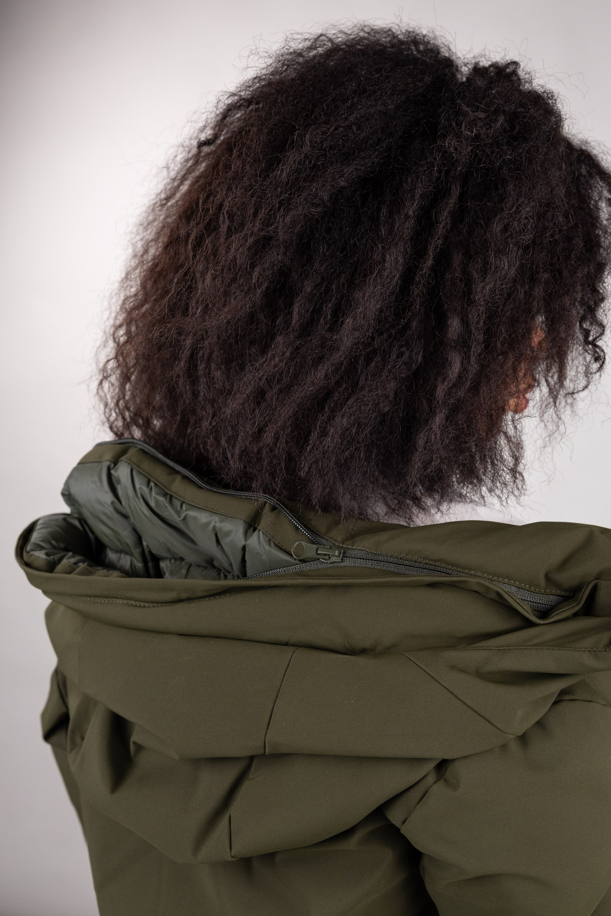 Il parka Nellie offre calore e comfort in ogni minimo dettaglio dall'imbottitura in Recycled PLUMTECH ai polsini interni in Lycra passando per la fodera in flanella delle tasche. Tagliato con linea ad A regolabile in vita è chiuso da zip centrale a doppio cursore e bottoni automatici nascosti. Il dettaglio inaspettato? All'occorrenza l'ampio collo può essere trasformato in un cappuccio regolabile grazie alla pratica zip.