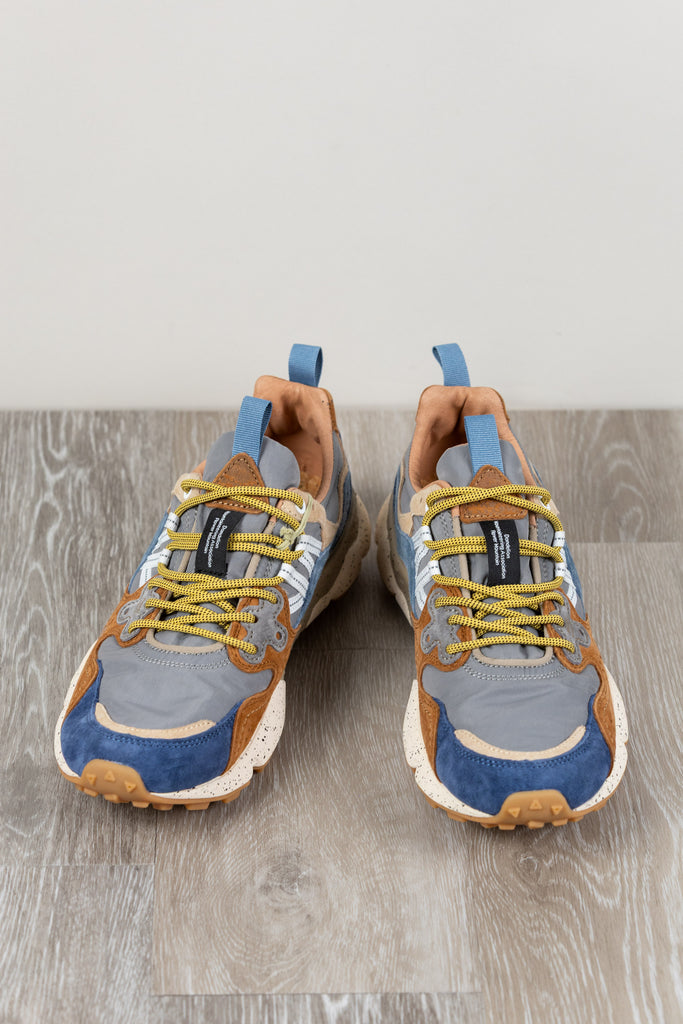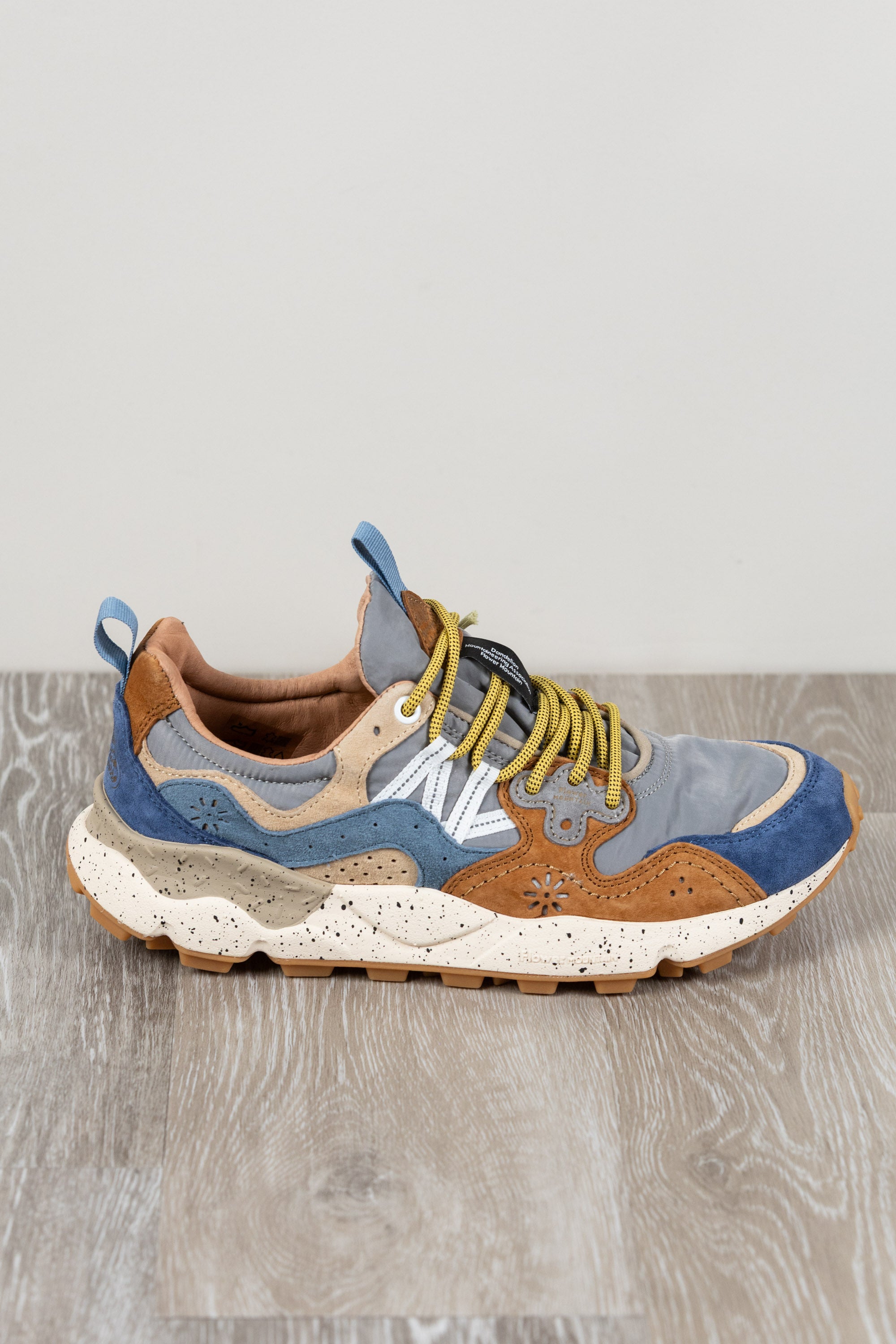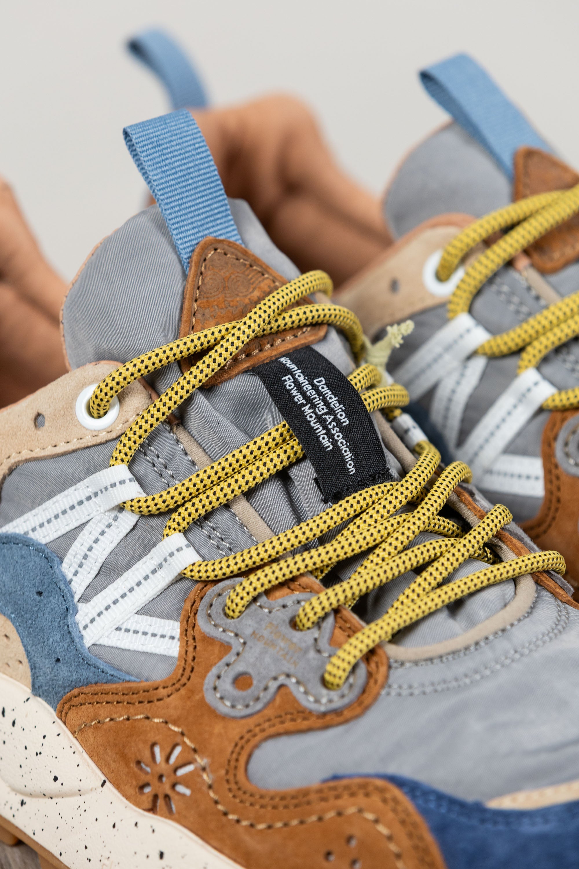 Sneaker aus technischem Gewebe und Wildleder, mit verstärkten Ösen, Trekkingschnürsenkeln, anatomischer und antibakterieller Kork-Innensohle. Ultraleichte Gummisohle mit gezacktem Profil.