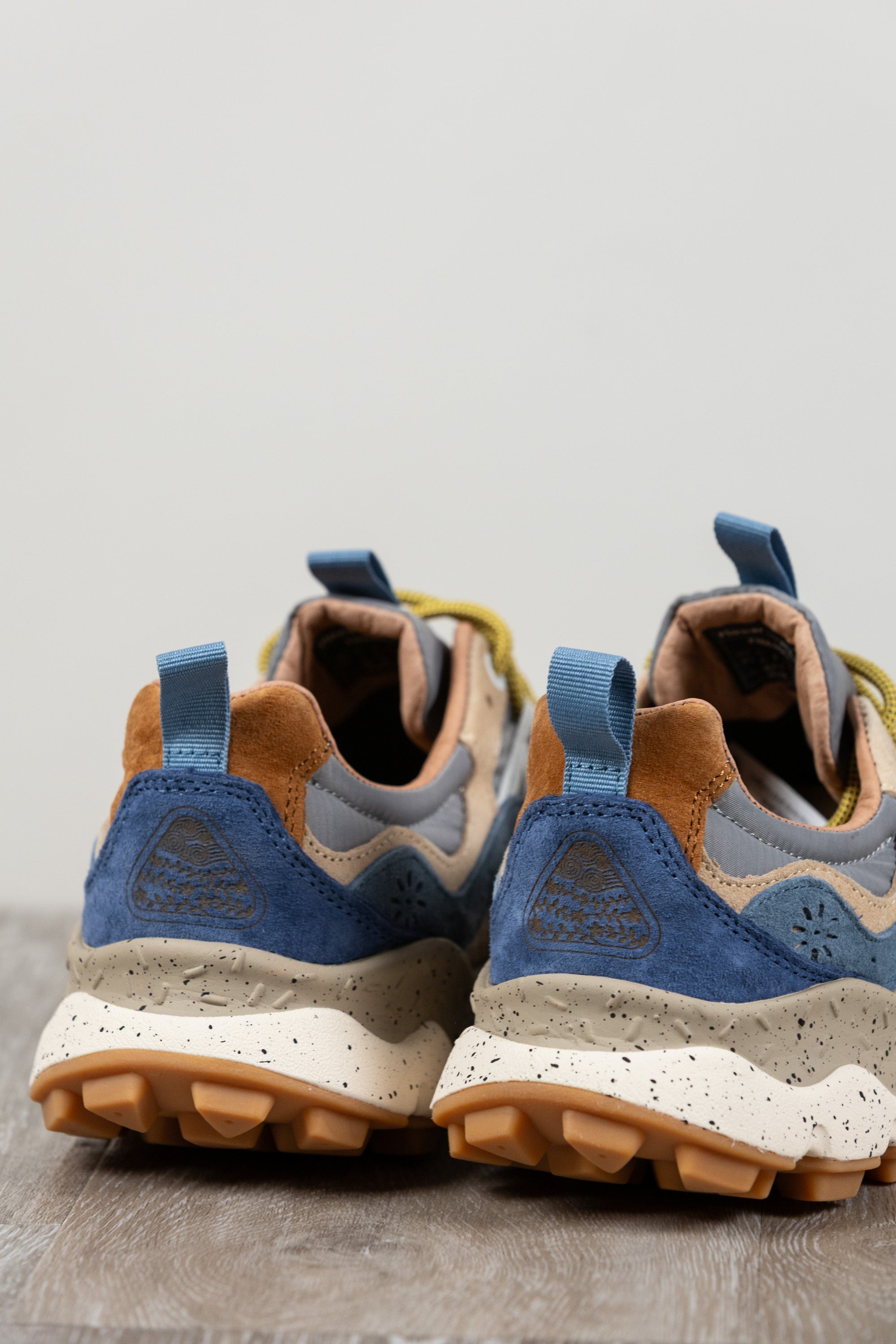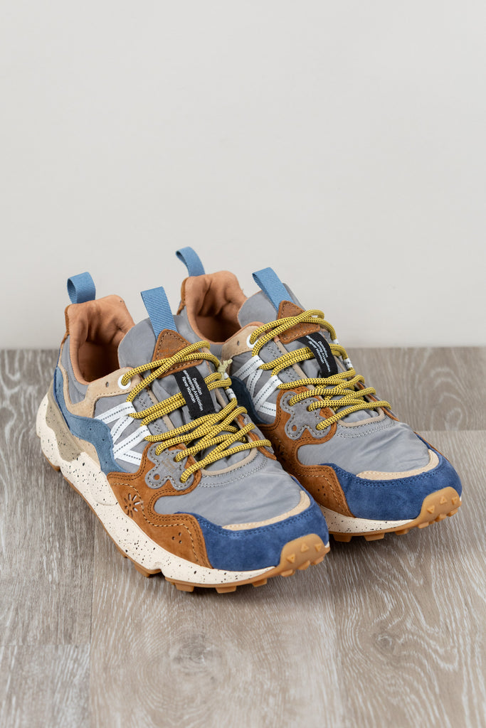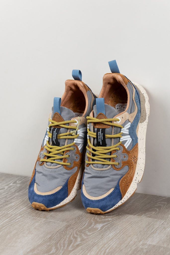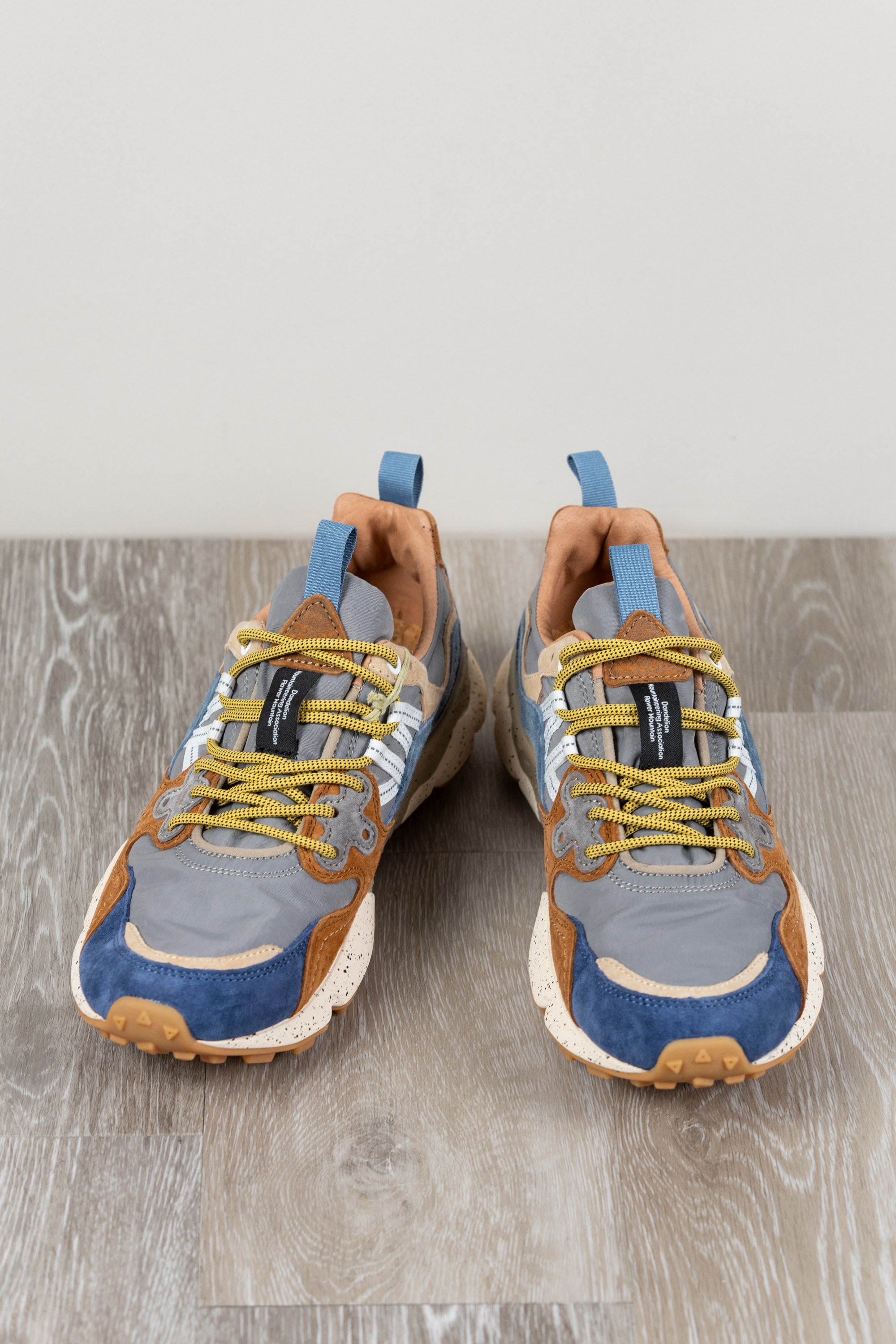 Sneaker aus technischem Gewebe und Wildleder, mit verstärkten Ösen, Trekkingschnürsenkeln, anatomischer und antibakterieller Kork-Innensohle. Ultraleichte Gummisohle mit gezacktem Profil.