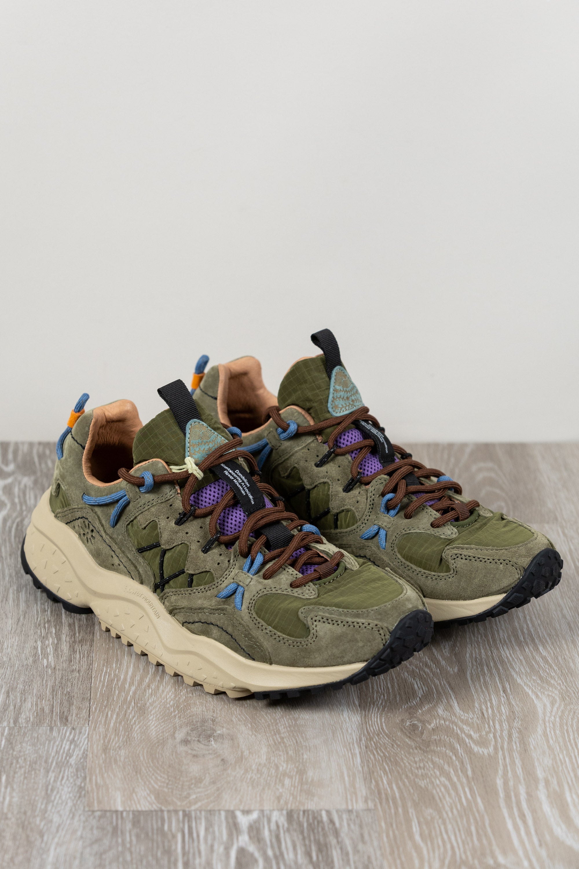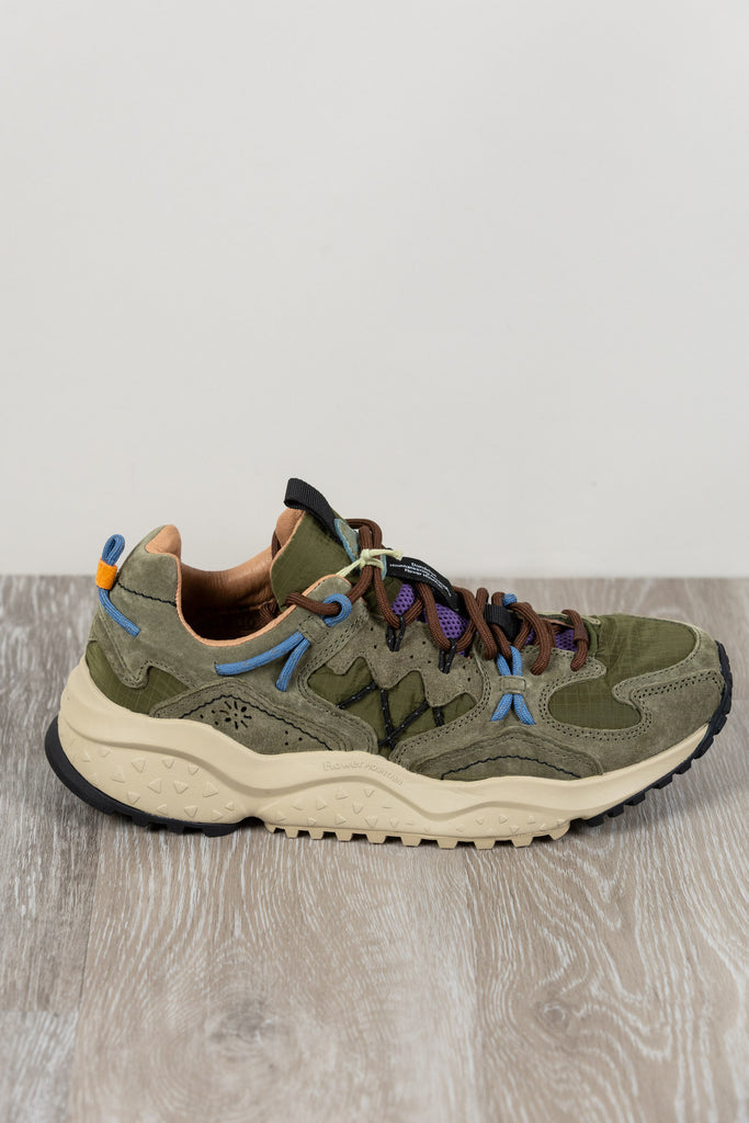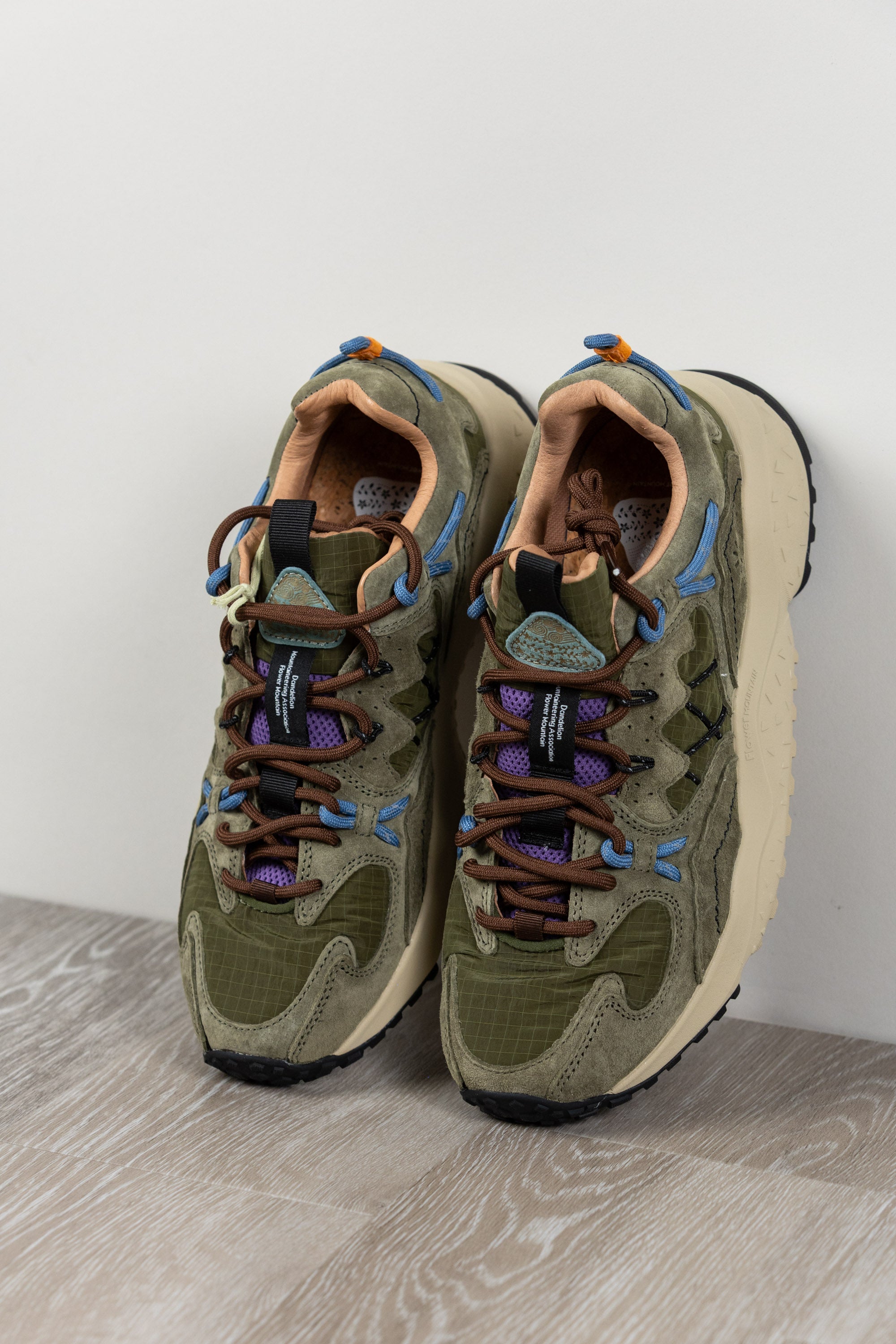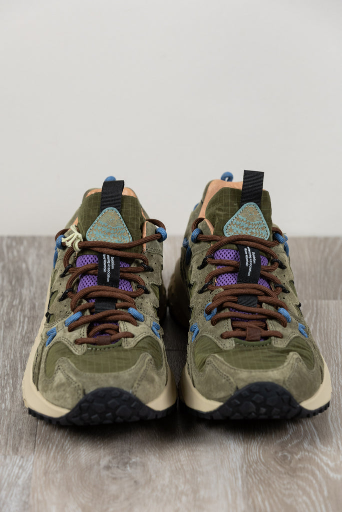 Outdoor-Sneaker aus Ripstop-Gewebe und Wildleder mit technischen Schlauchdetails. Schnürverschluss. Futter aus Leder und Stoff, antibakterielle Innensohle aus Naturkork. Ultraleichte Gummisohle mit zweifarbigem Profil.