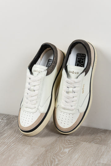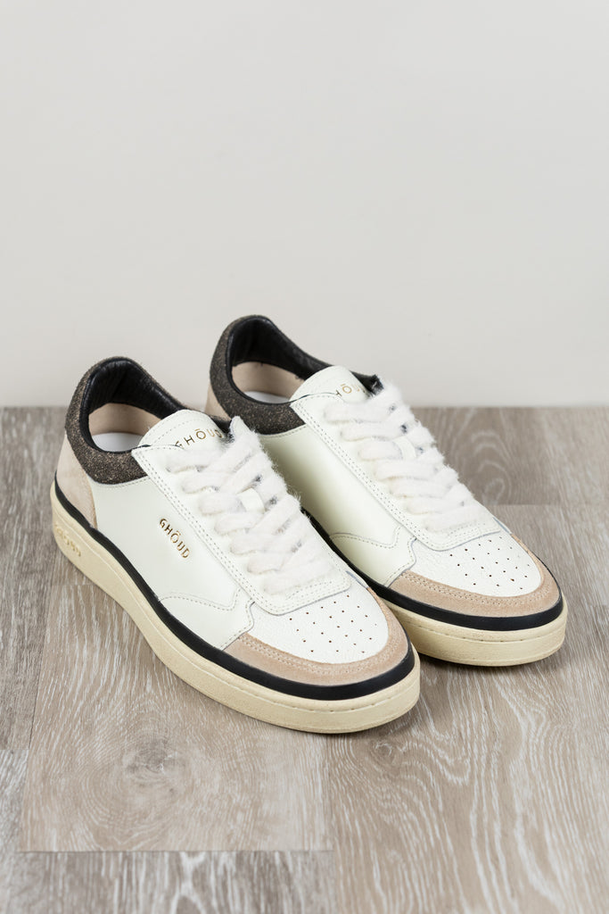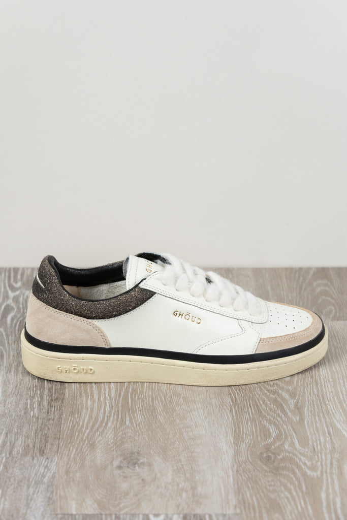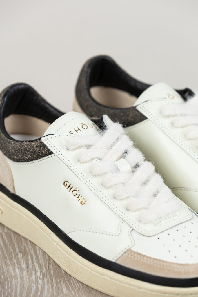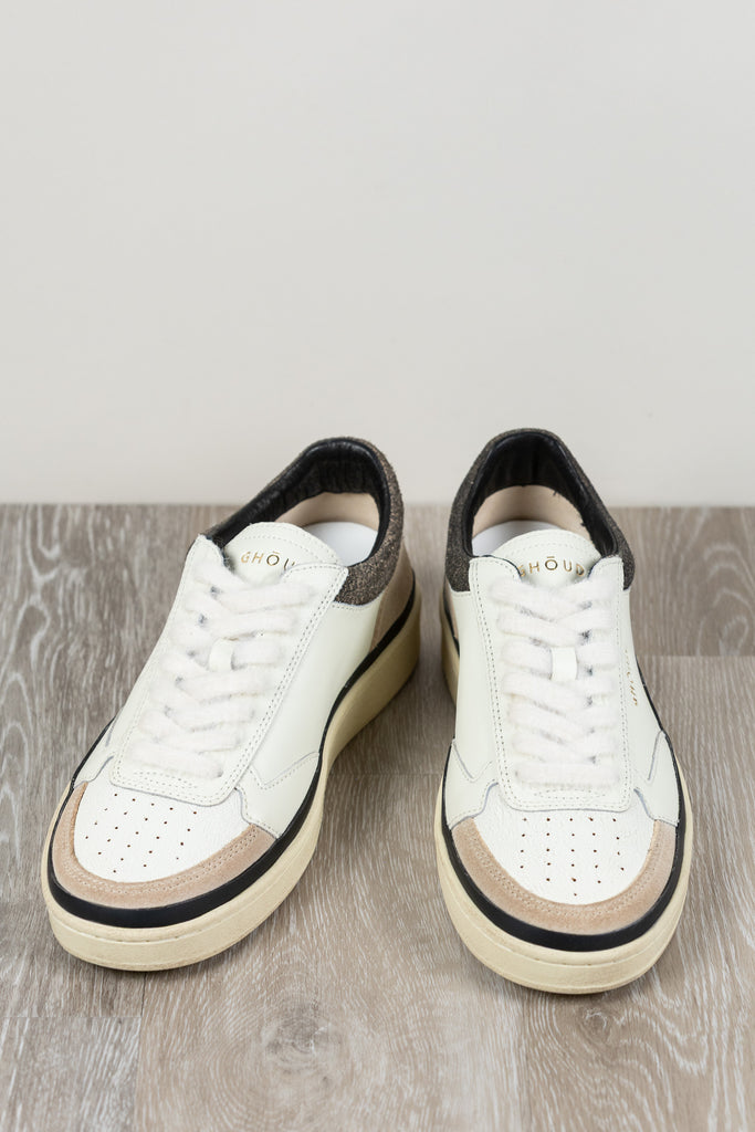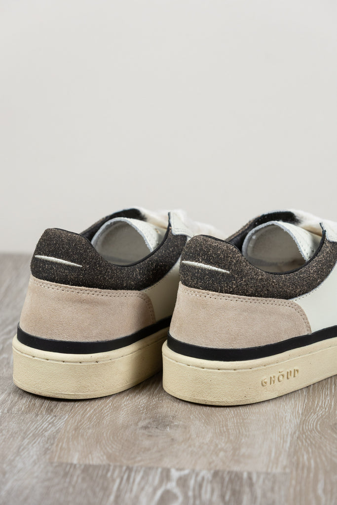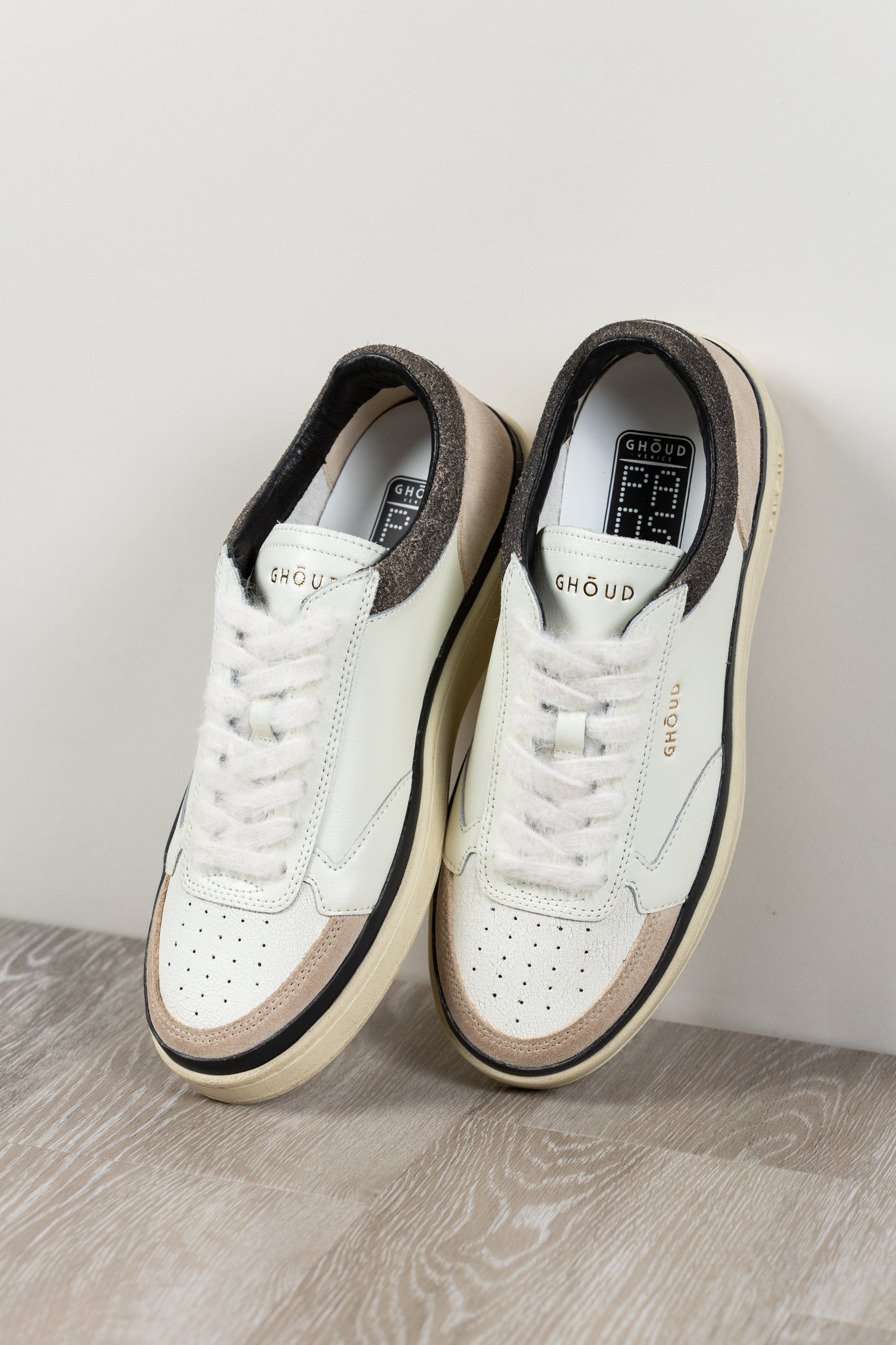 Pads Sneakers, Ghōuds neueste Kreation, zelebrieren die Essenz zeitgenössischen Designs. Gefertigt aus weichem, weißem Leder, verfügen sie über einen rissigen Absatz für einen strukturierten Akzent und eine durchgehende Heißversiegelung entlang der Sohle für eine klare, moderne Ästhetik. Veredelt durch ein handgealtertes Finish.