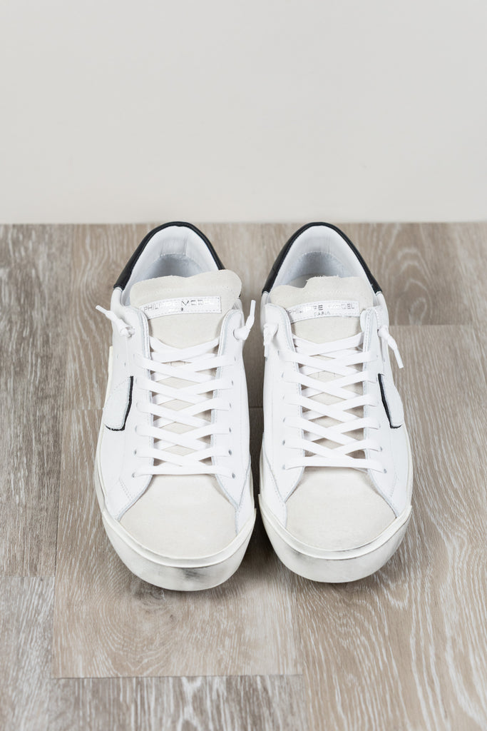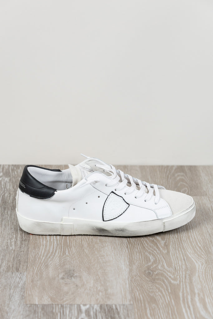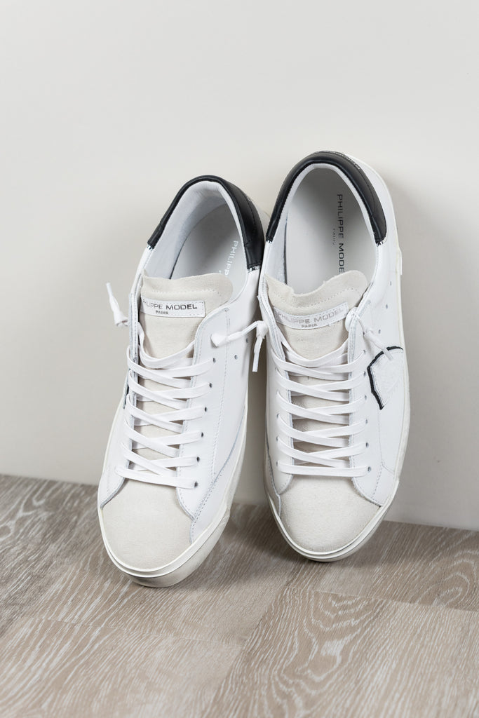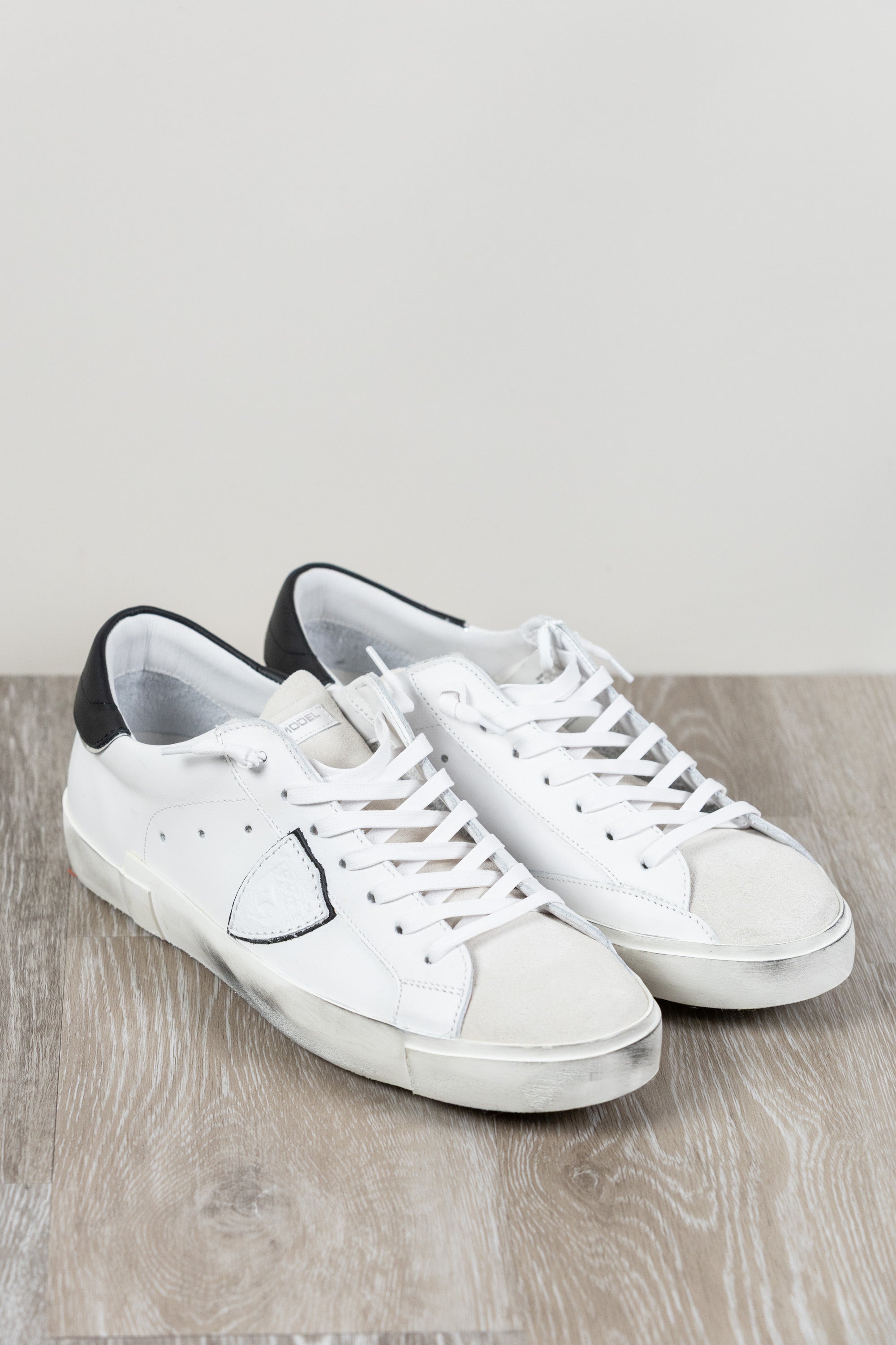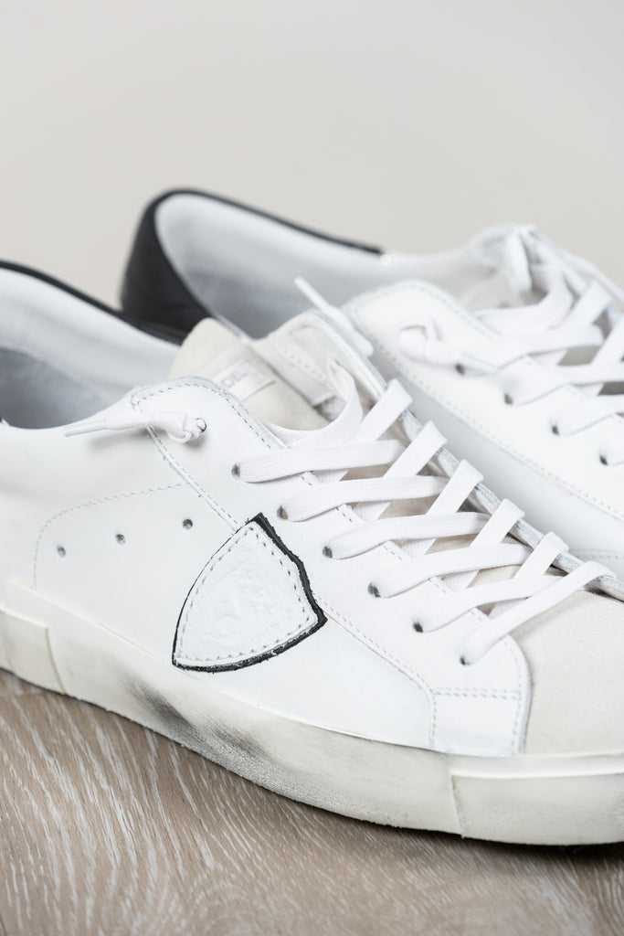 Zurück zu den Basics, auch bei Sneakers: Das Modell Prsx präsentiert sich in minimalistischem Schwarz-Weiß. Das Ergebnis ist ein von den Straßenschuhen der 80er inspiriertes Modell mit modernem Touch und einer Vintage-Behandlung des Oberleders für einen eingetragenen Look. Die unregelmäßige Bänderung am Rand ist handgefertigt und weist Distressed-Details auf.