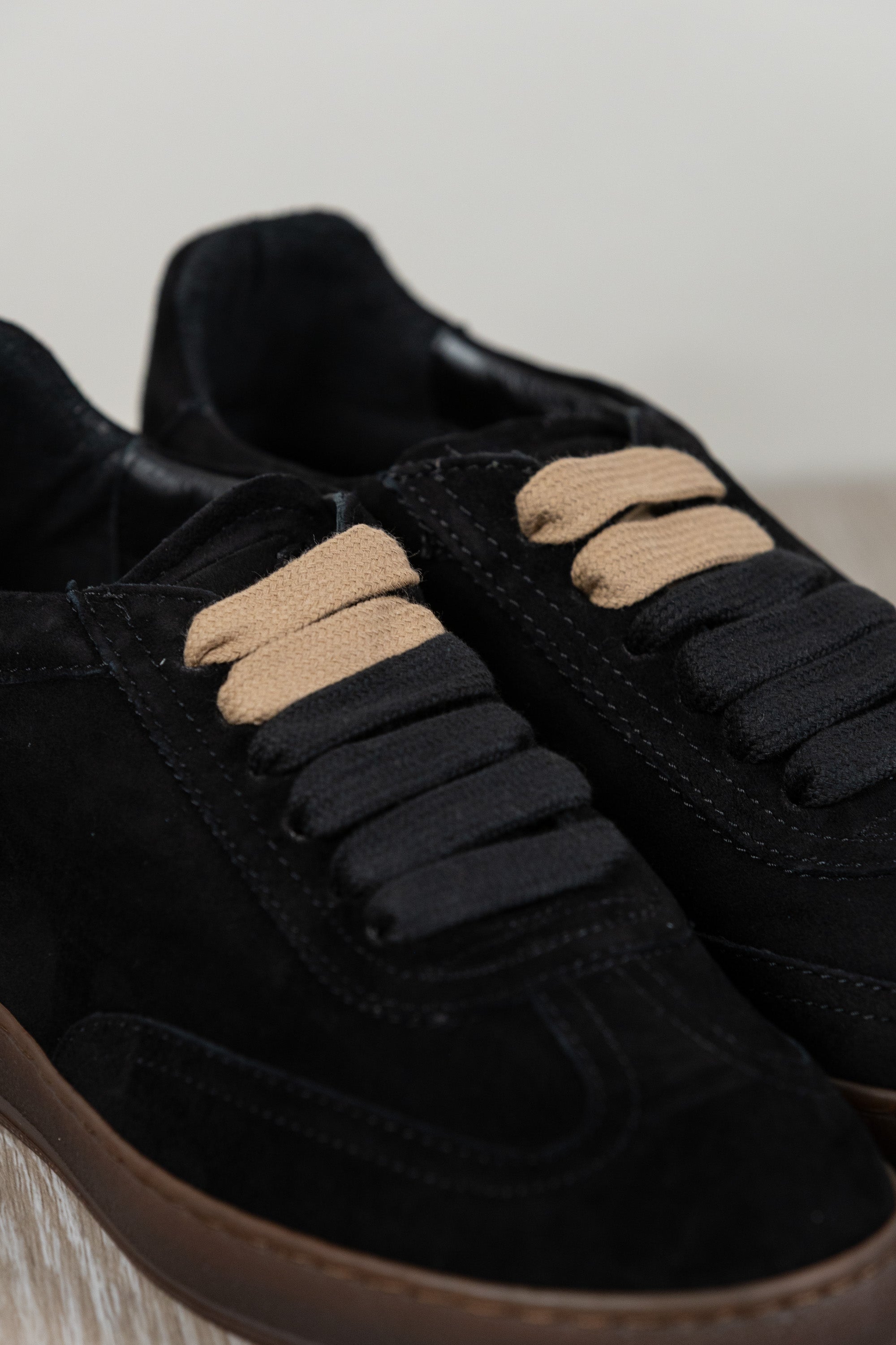 Der Akira Soldini80 Sneaker aus weichem Wildleder ist komplett ungefüttert und bietet dank seines dekonstruierten Obermaterials, des herausnehmbaren, ledergefütterten Fußbetts und der ultraleichten Gummisohle unvergleichlichen Komfort. Ungefüttert für mehr Flexibilität ist dieser Schuh perfekt für den Alltag, egal ob bei der Arbeit oder in der Freizeit.