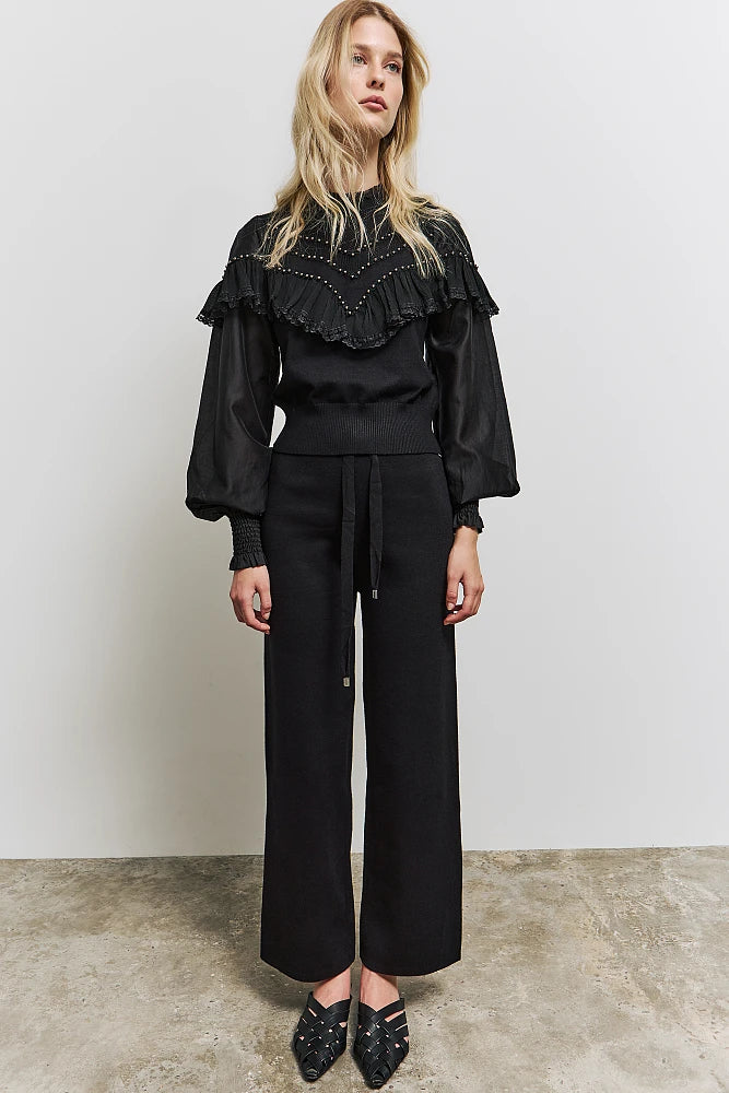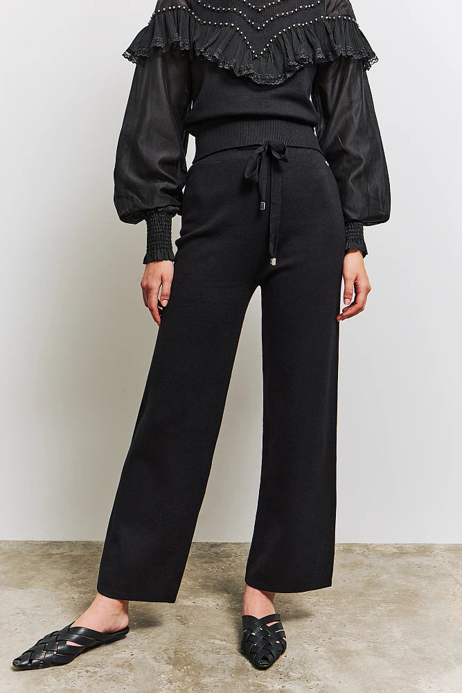 Pantaloni svasati in maglia, con cinturino regolabile in vita, vestibilità regolare