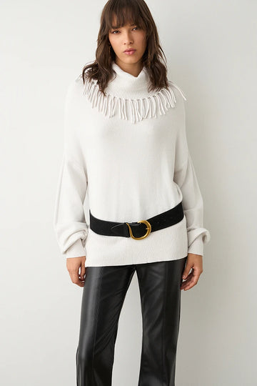 Maglione con maniche lunghe, con collo alto, frange, vestibilità regolare, consistenza morbida