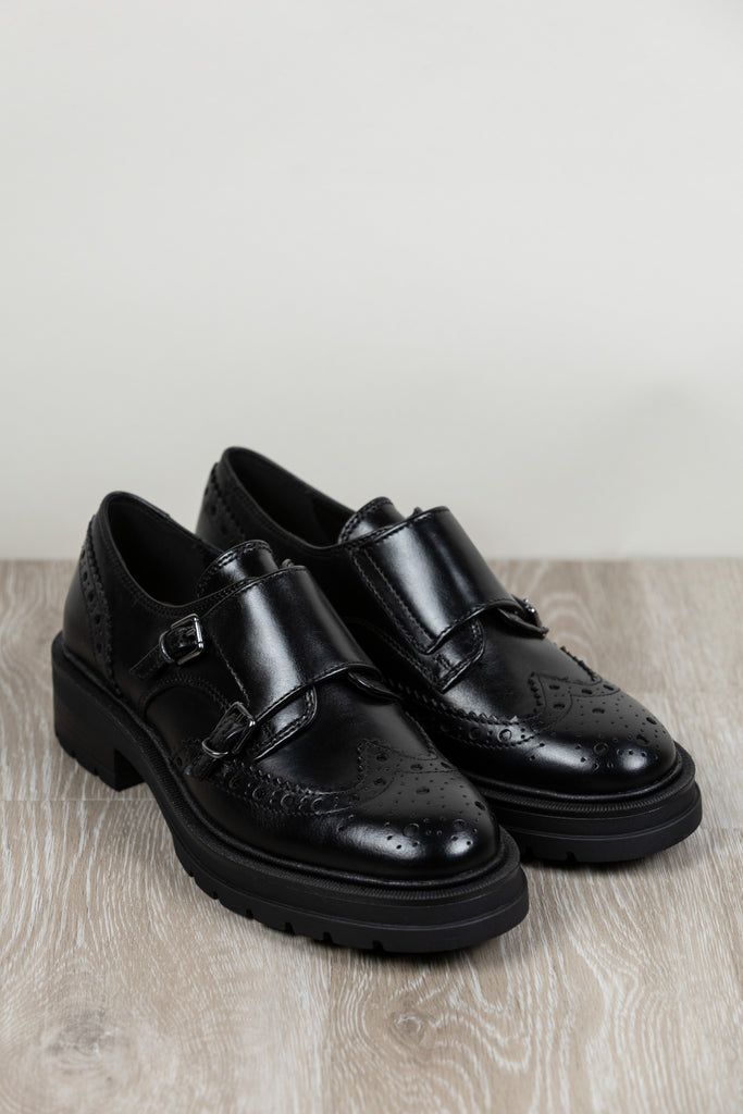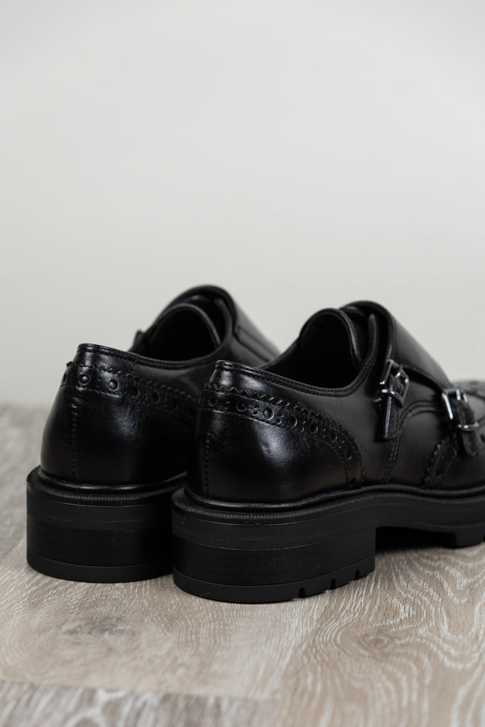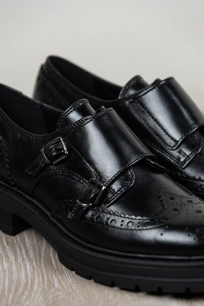 Raffinierter und eleganter Stil für die PATTY DOUBLE-Doppelschnalle, bereichert durch Schwalbenschwanznähte an der Spitze