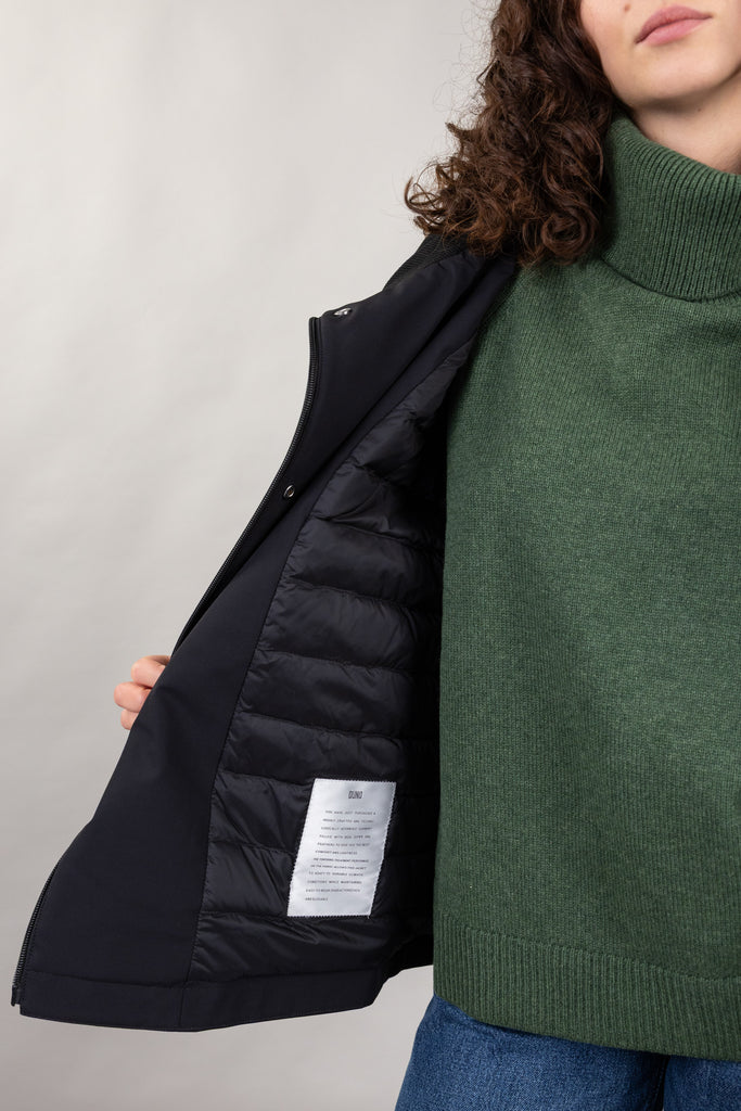 - Zusammensetzung: 83% Poliammide e 17% Elastan - Fodera: 100% Poliammide - Imbottitura: 90% Piumino d'anatra e 10% Piuma d'anatra