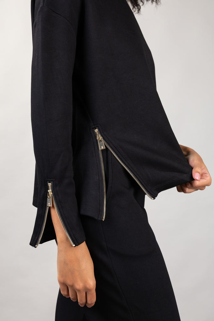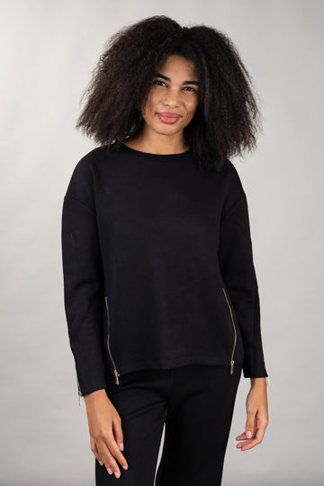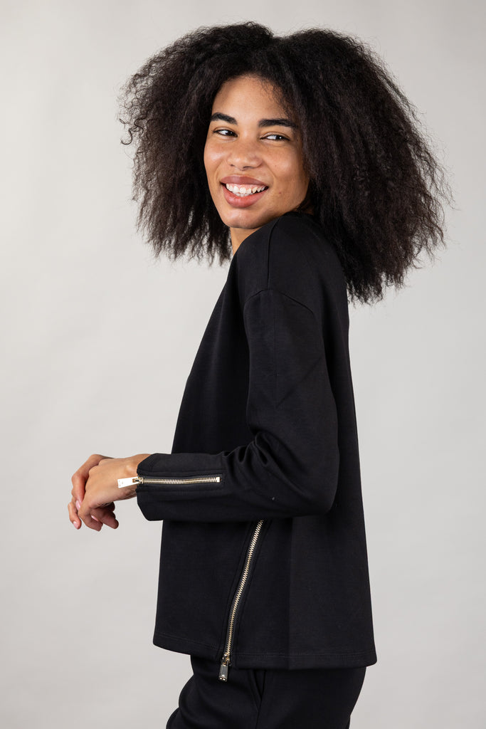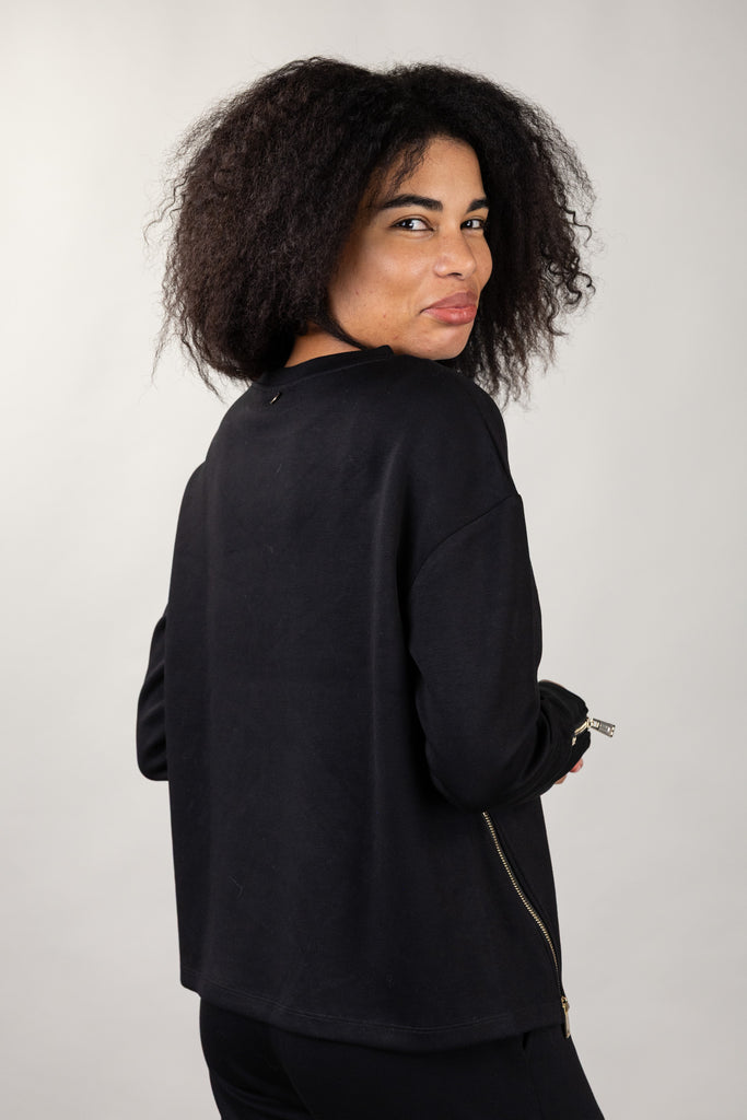 LUCKY LU SCHWARZES DAMEN-SWEATSHIRT MIT REISSVERSCHLUSS
