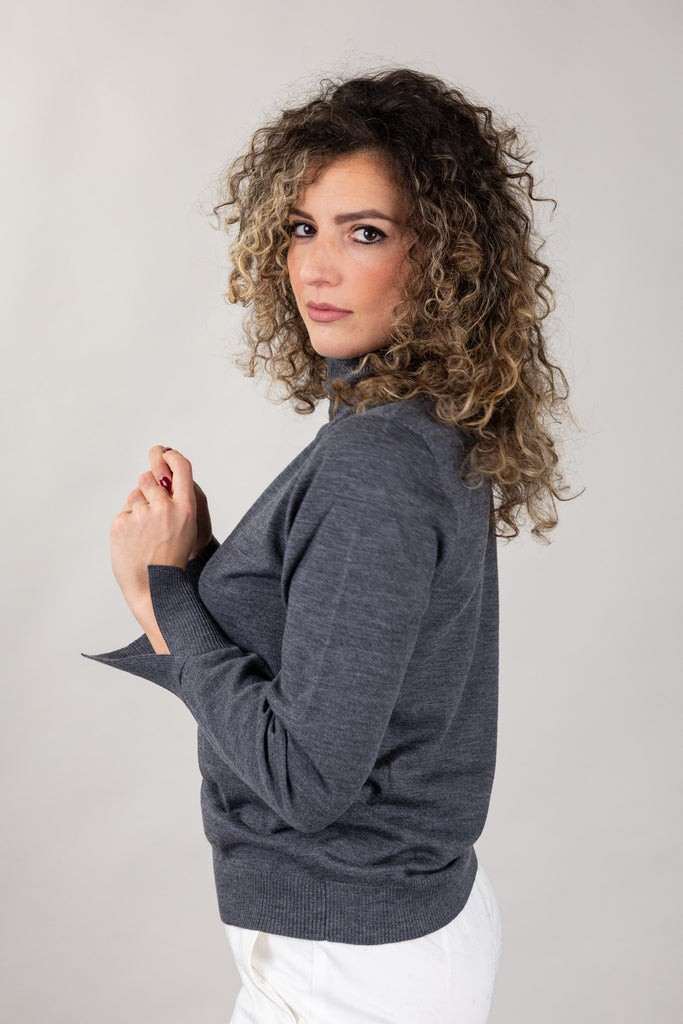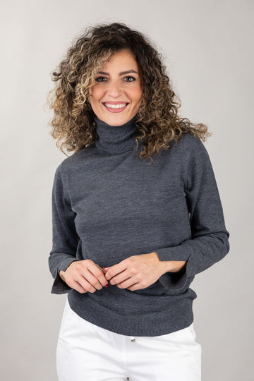 SEVENTY VENEZIA DAMEN ROLLKRAGENPULLOVER AUS GRAUER WOLLE