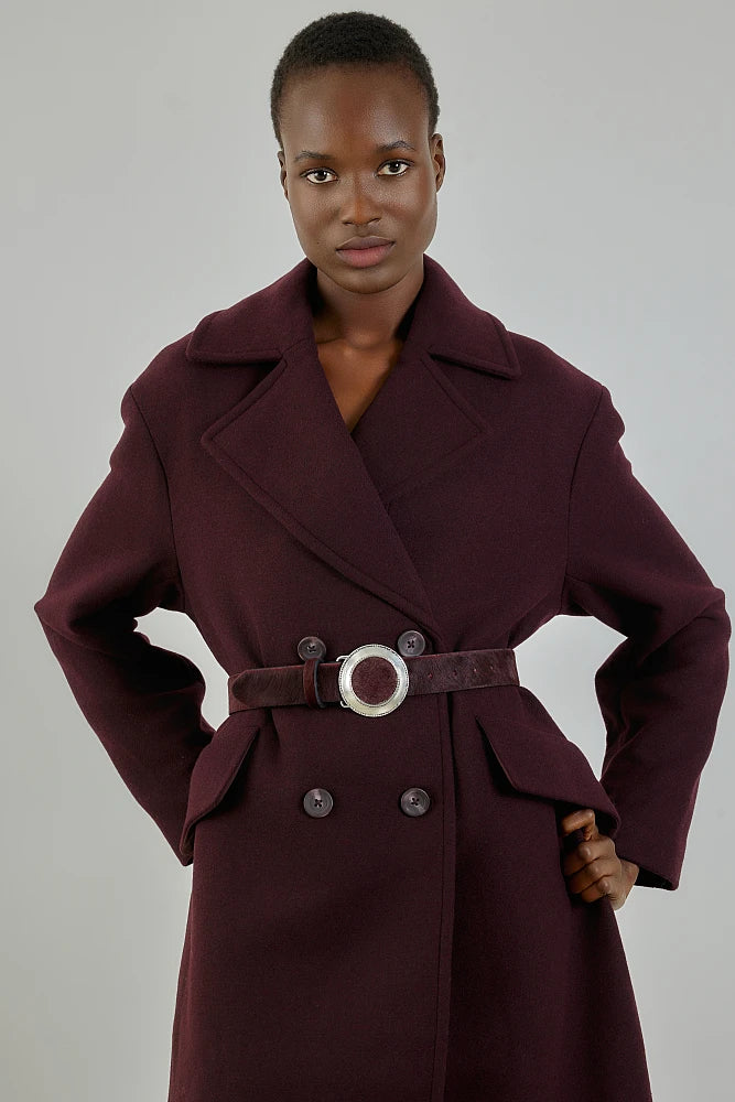 Cintura in pelle effetto cavallino, con fibbia metallica, chiusura regolabile