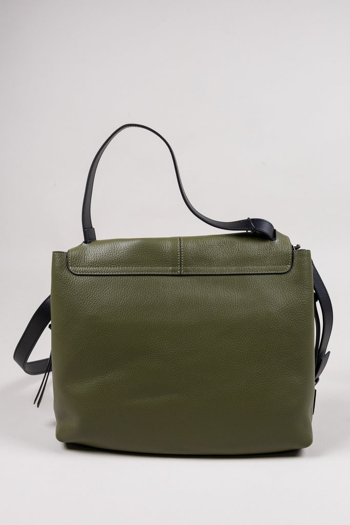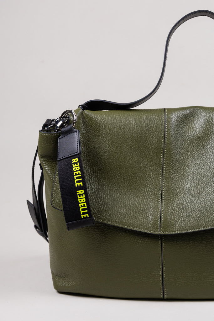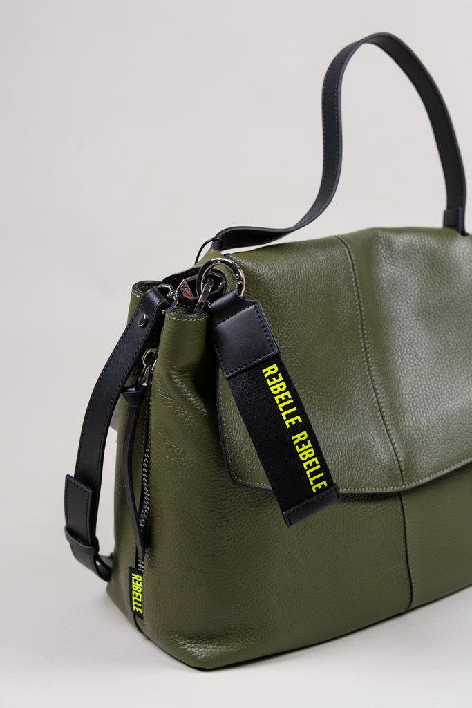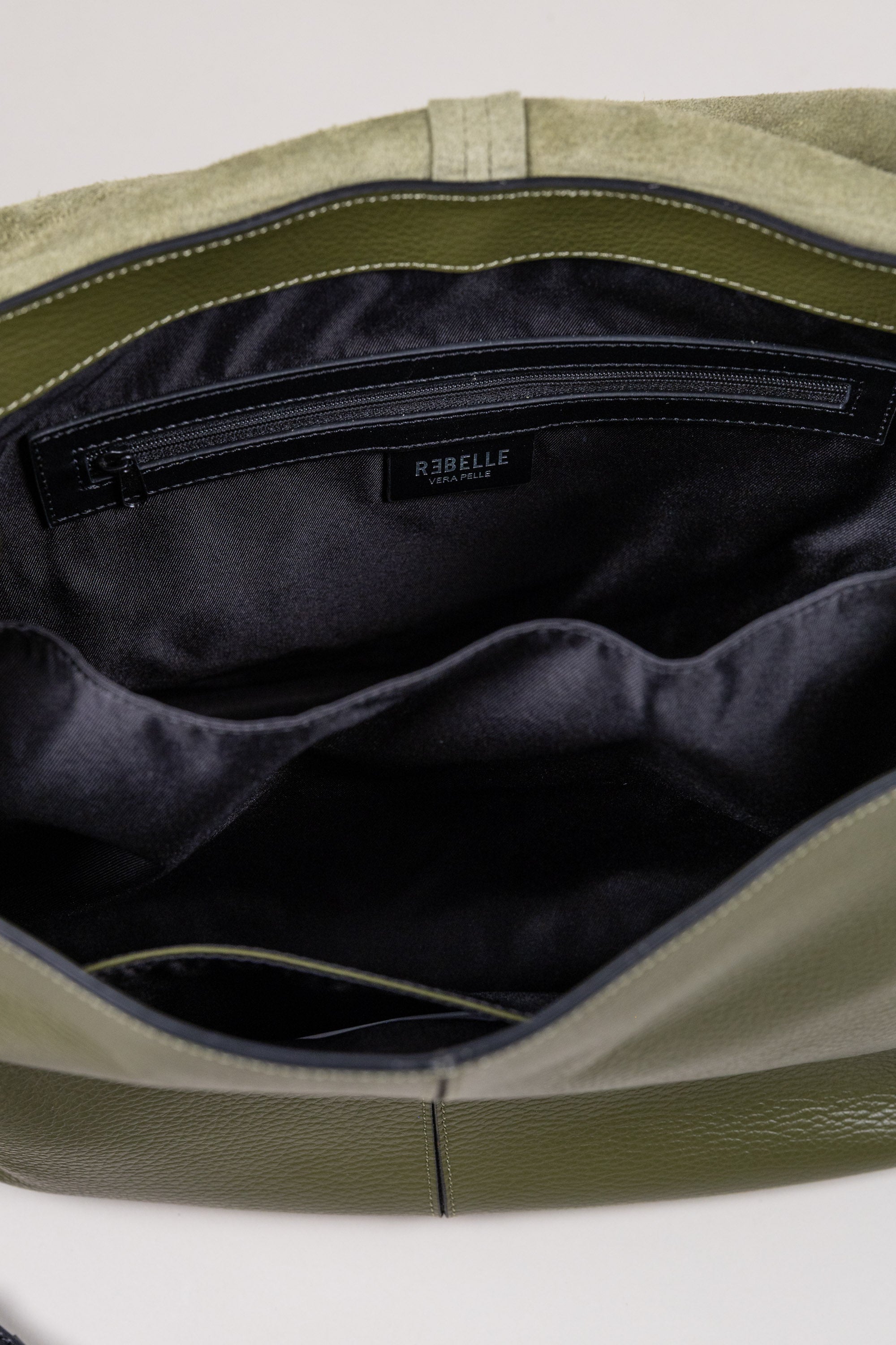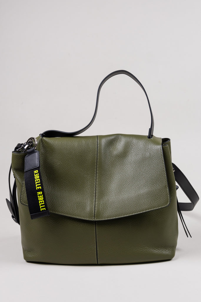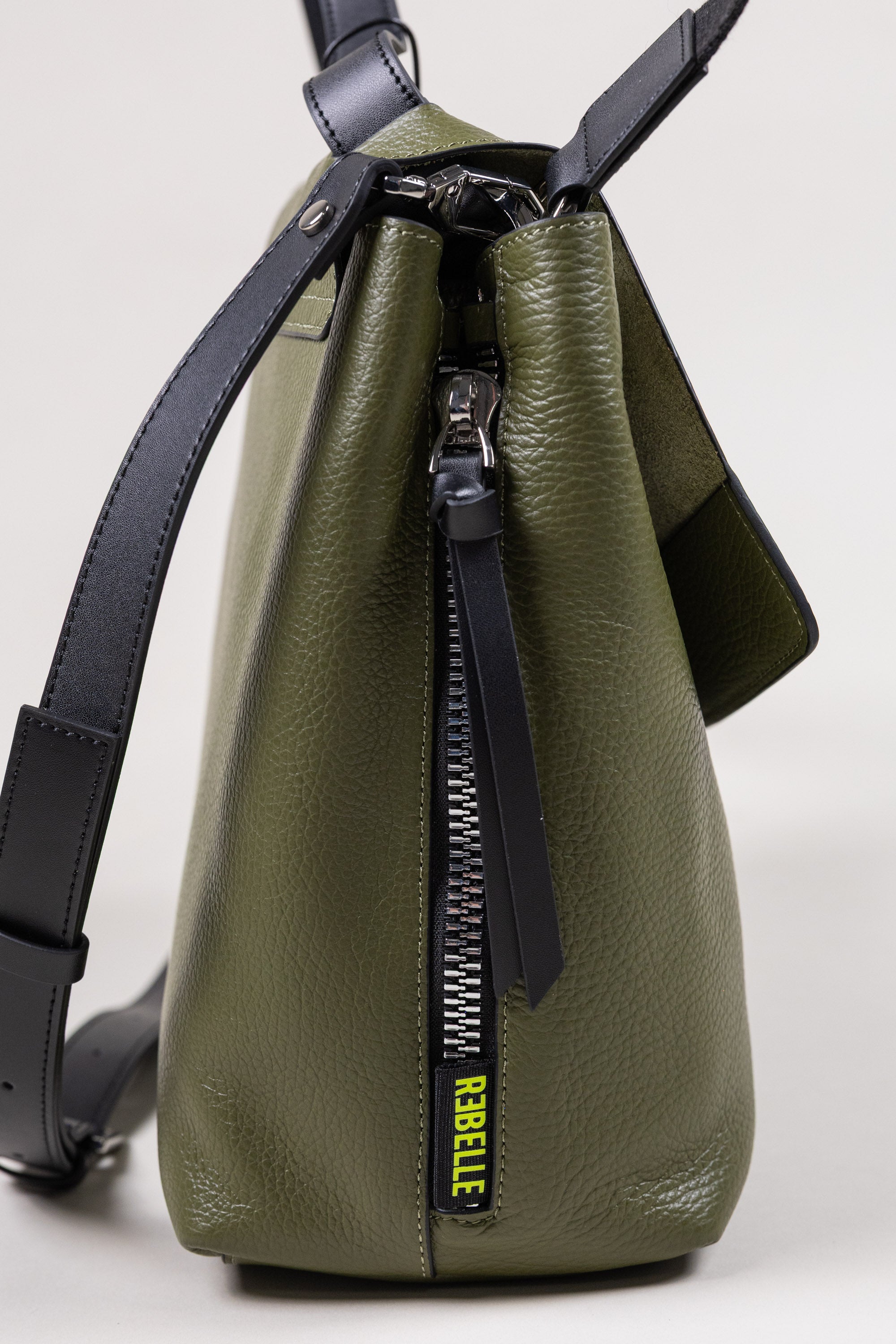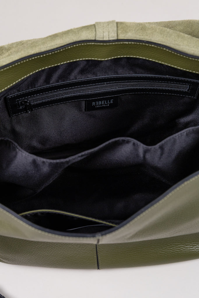 This is LAMPETRA, our genuine leather satchel bag from the BASIC collection. LAMPETRA is the must-have of the Rebelle collection, a comfortable, practical, and stylish bag. It features dual carry options: it can be carried by hand or, thanks to the detachable and adjustable shoulder strap, worn crossbody. The interior is lined and divided into two compartments.