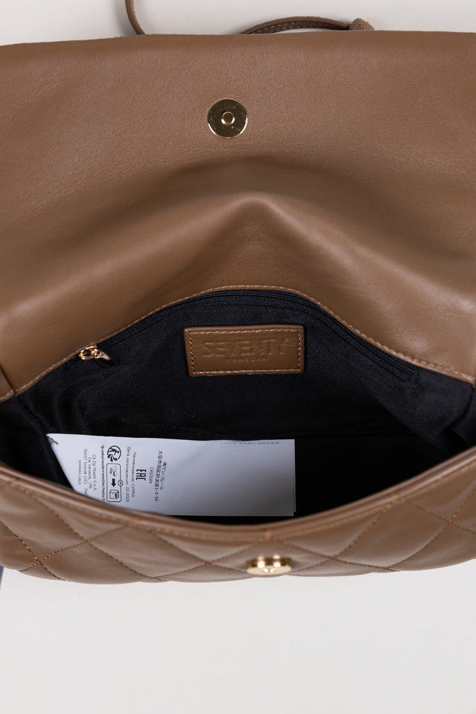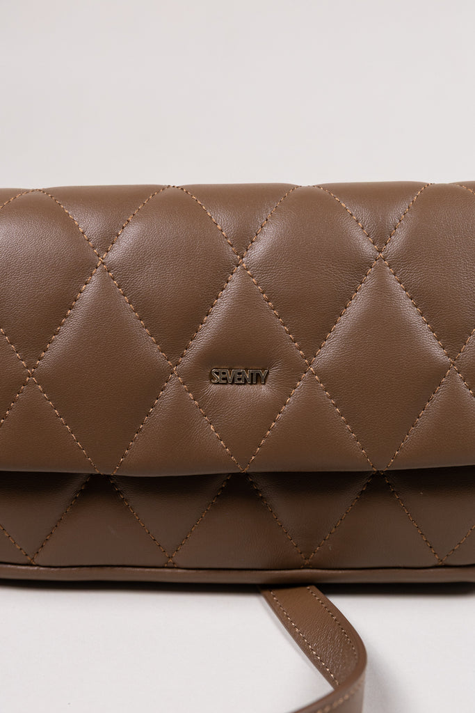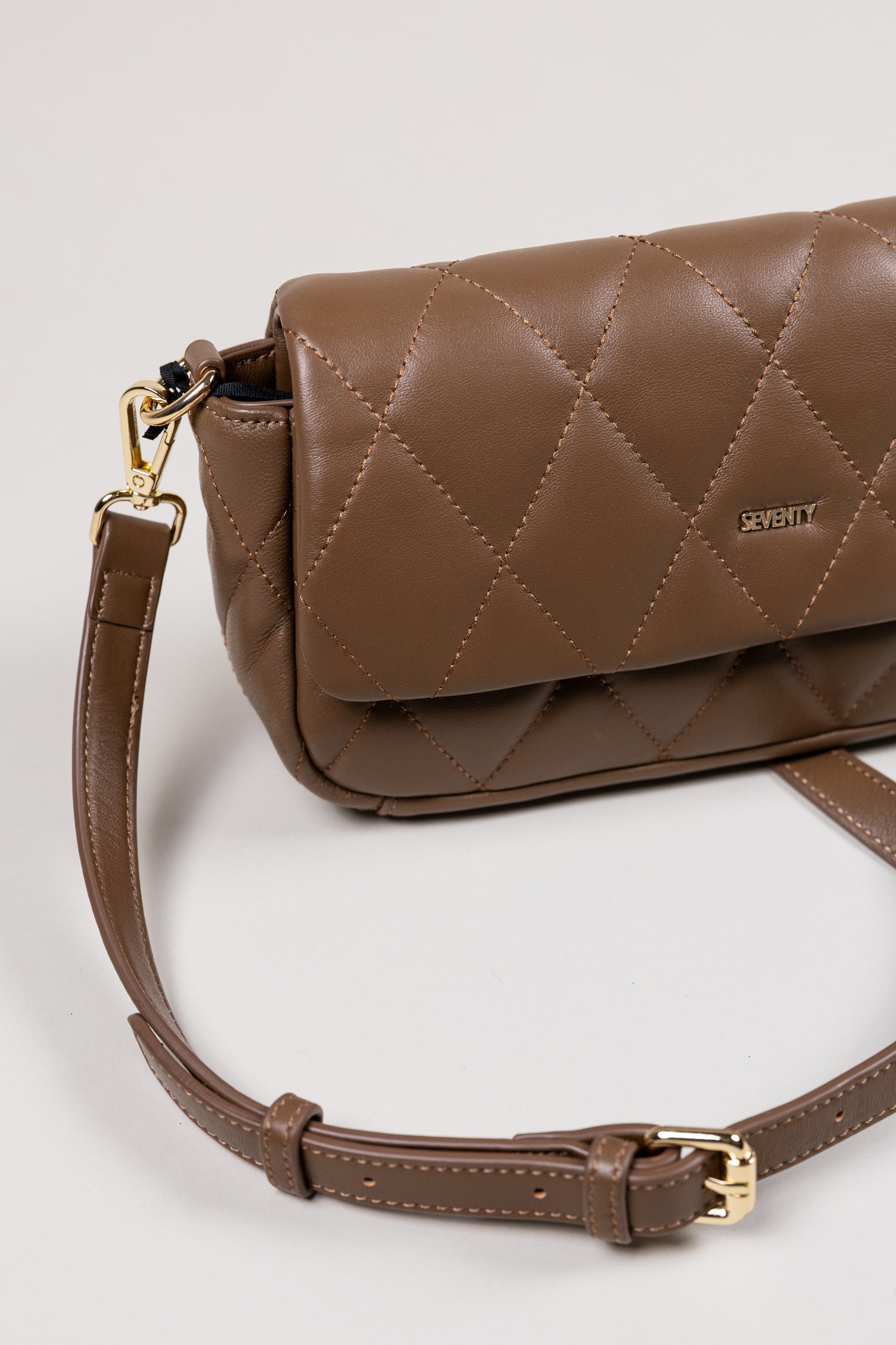 Mini diamond-quilted lambskin clutch bag with shoulder strap.