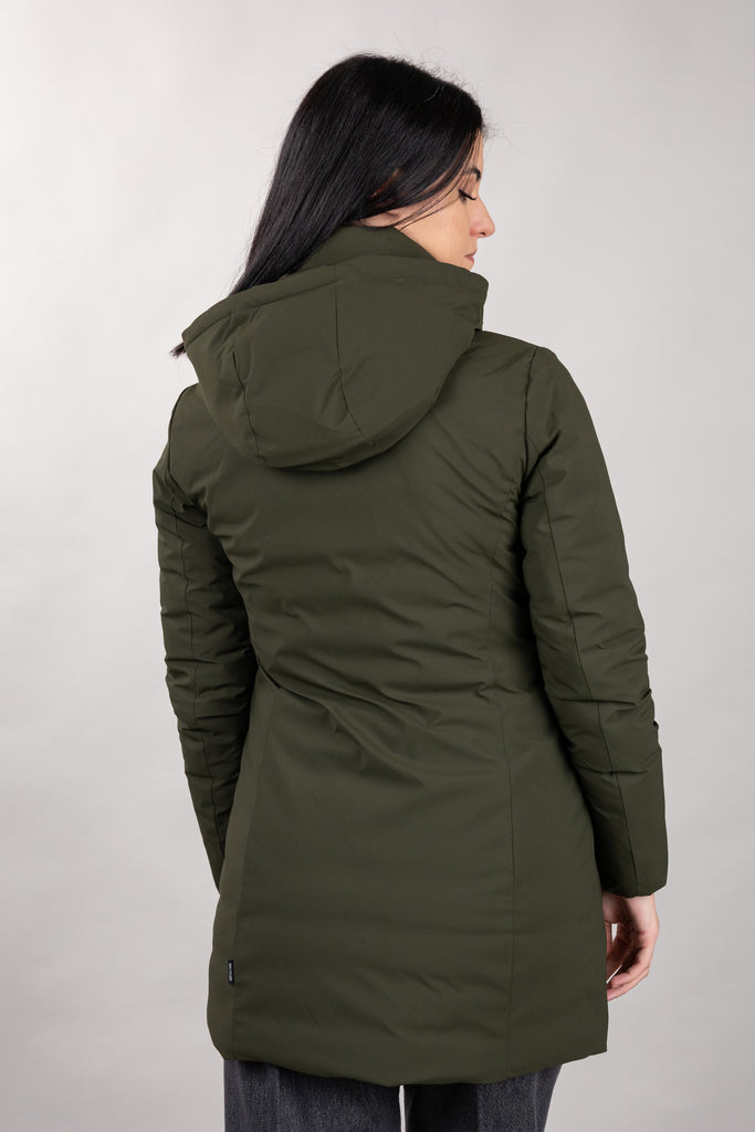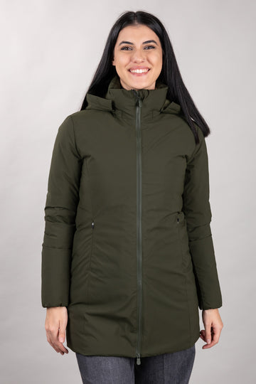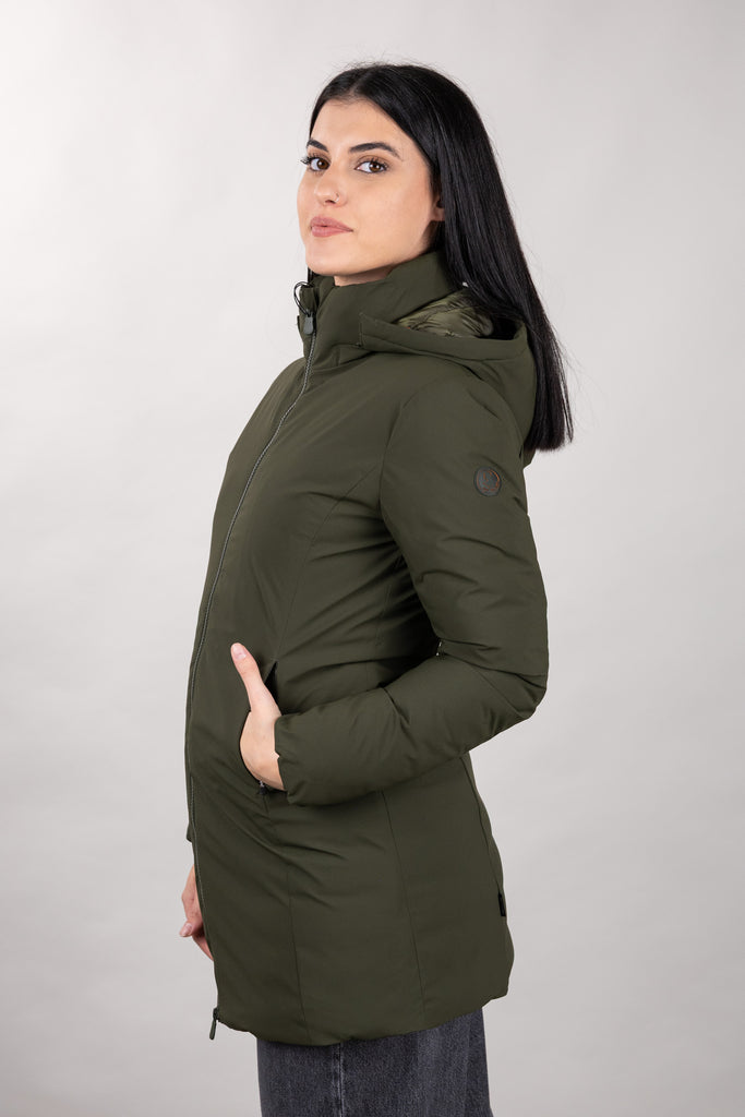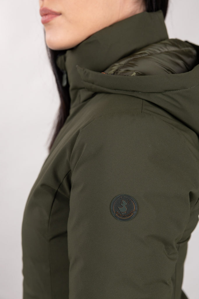 SAVE THE DUCK WOMEN'S LAND GREEN HOODED COAT
