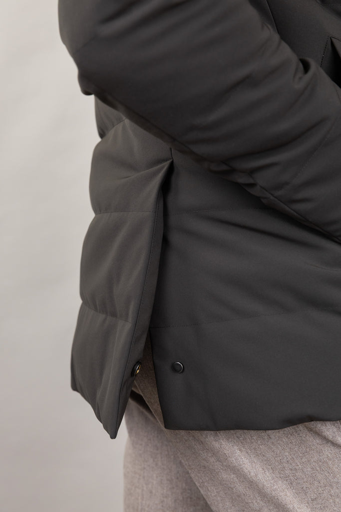 - Composition: Tessuto: 91% Poliestere e 9% Elastan - Fodera: 100% Poliammide - Imbottitura: 90% Piumino e 10% Piuma