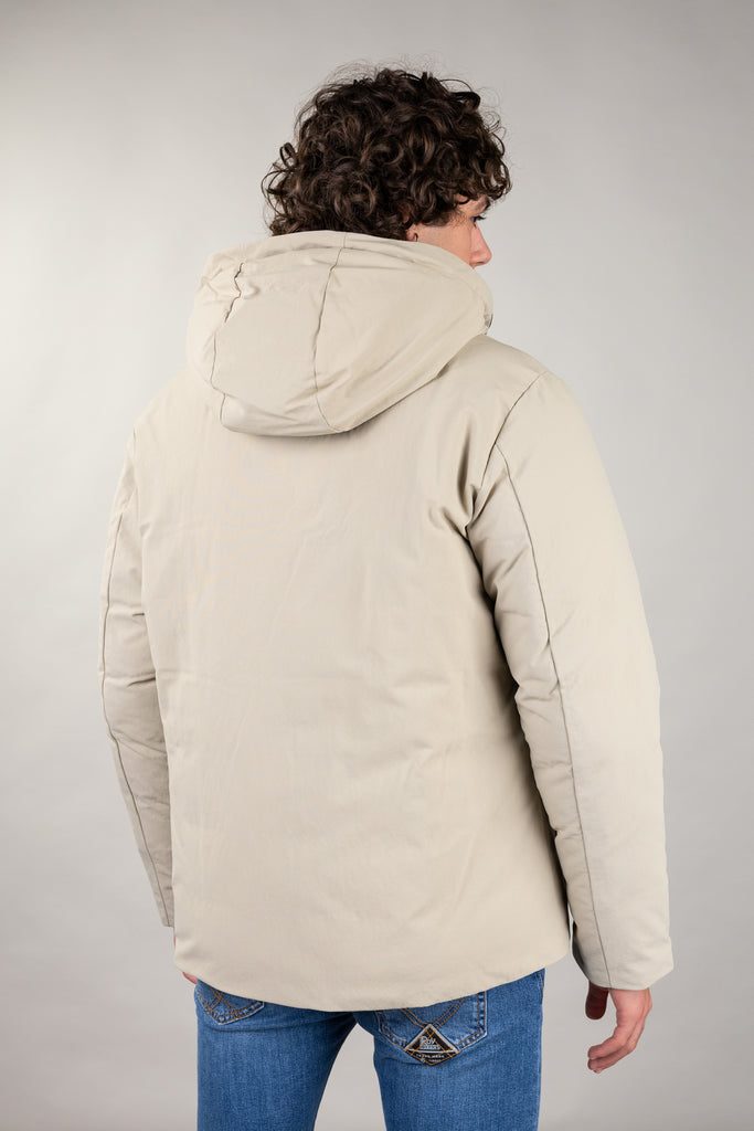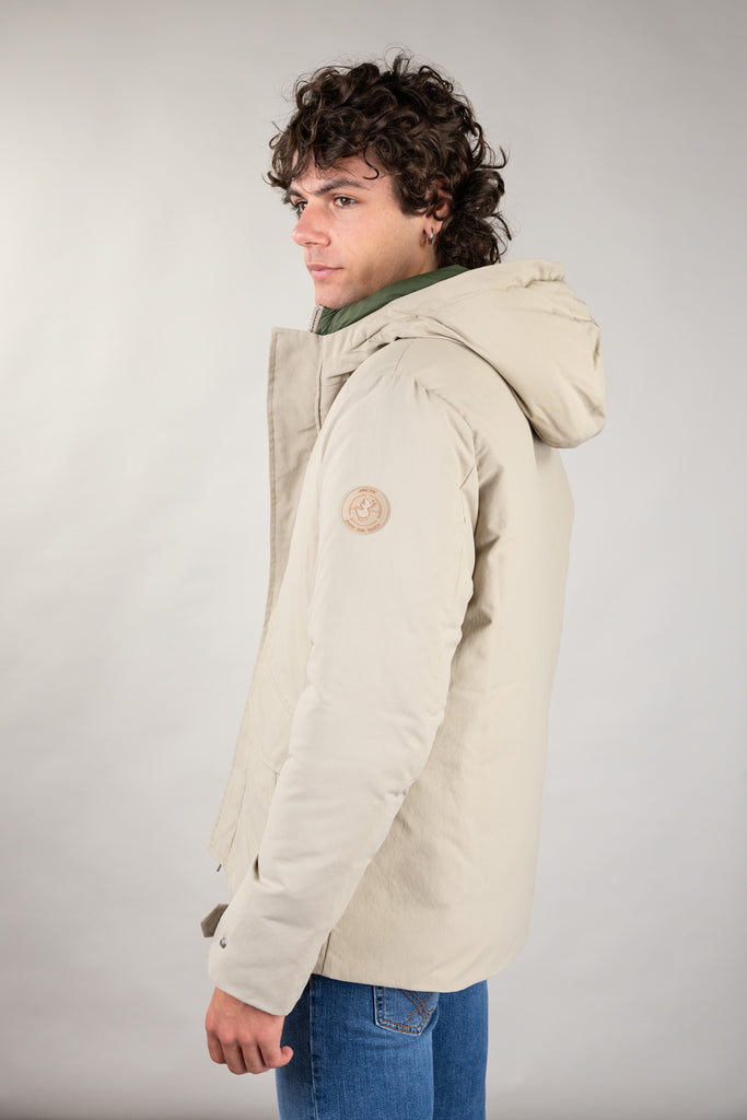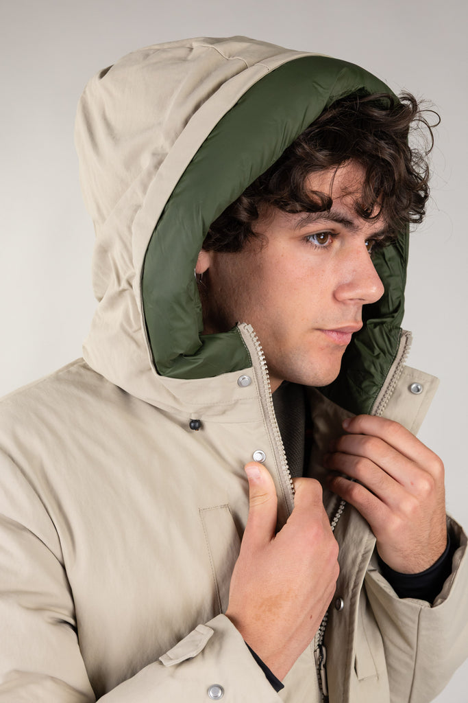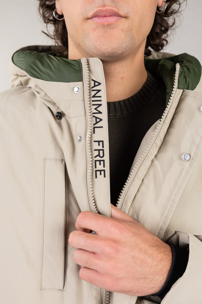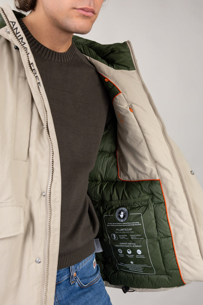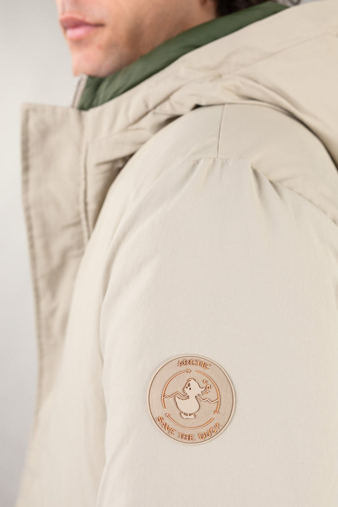 Comfort e funzionalità si incontrano nel parka uomo modello Enzo, realizzato in un nylon riciclato dall’aspetto naturale simile al cotone: leggero, traspirante e idrorepellente. L’imbottitura in Recycled Plumtech® offre calore 100% animal free, perfetto per affrontare le giornate più fredde. Il cappuccio trapuntato, la doppia chiusura con zip e bottoni, i polsini regolabili e le tasche multiple lo rendono un capo versatile, adatto tanto alla città quanto all'outdoor. Completano il design i dettagli firmati Save The Duck: il logo tono su tono e il tirazip personalizzato.