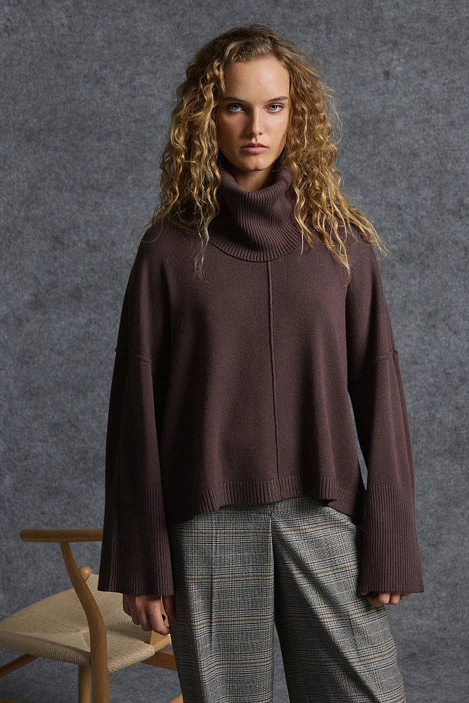 Maglione con collo alto staccabile, scollo tondo, vestibilità regolare, morbido al tatto
