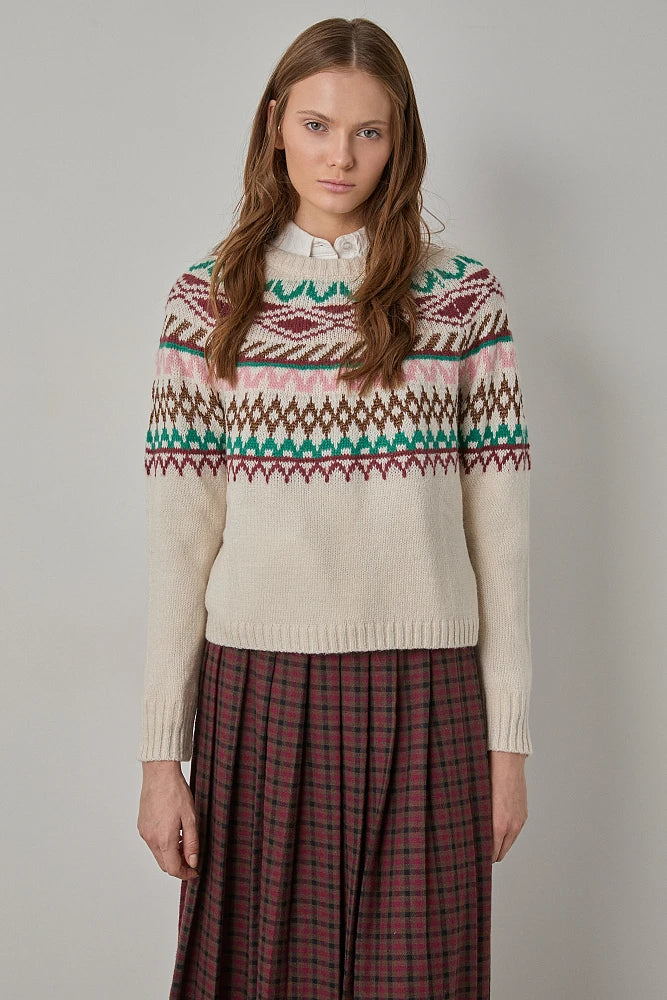Maglione stampato, con maniche lunghe, scollo tondo, con dettagli in lurex, vestibilità regolare, texture morbida