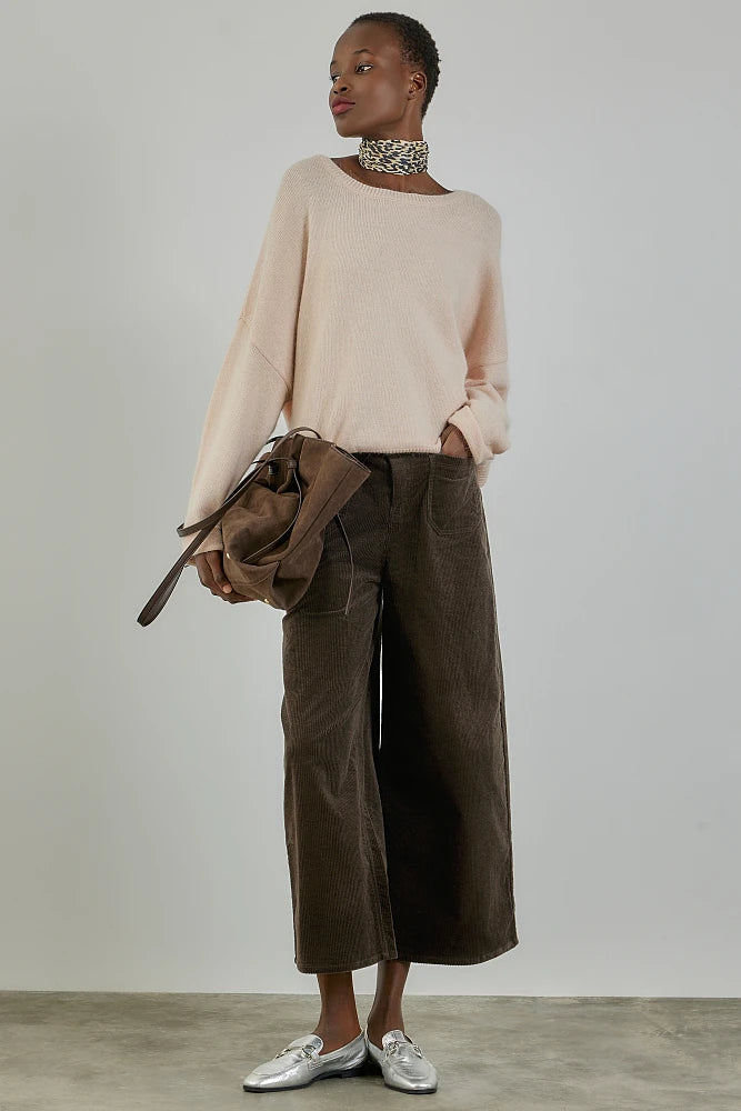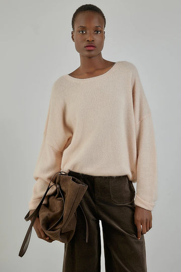 Maglione con orlo rovesciato sulle maniche, morbido al tatto, vestibilità ampia, scollo dritto, maniche lunghe