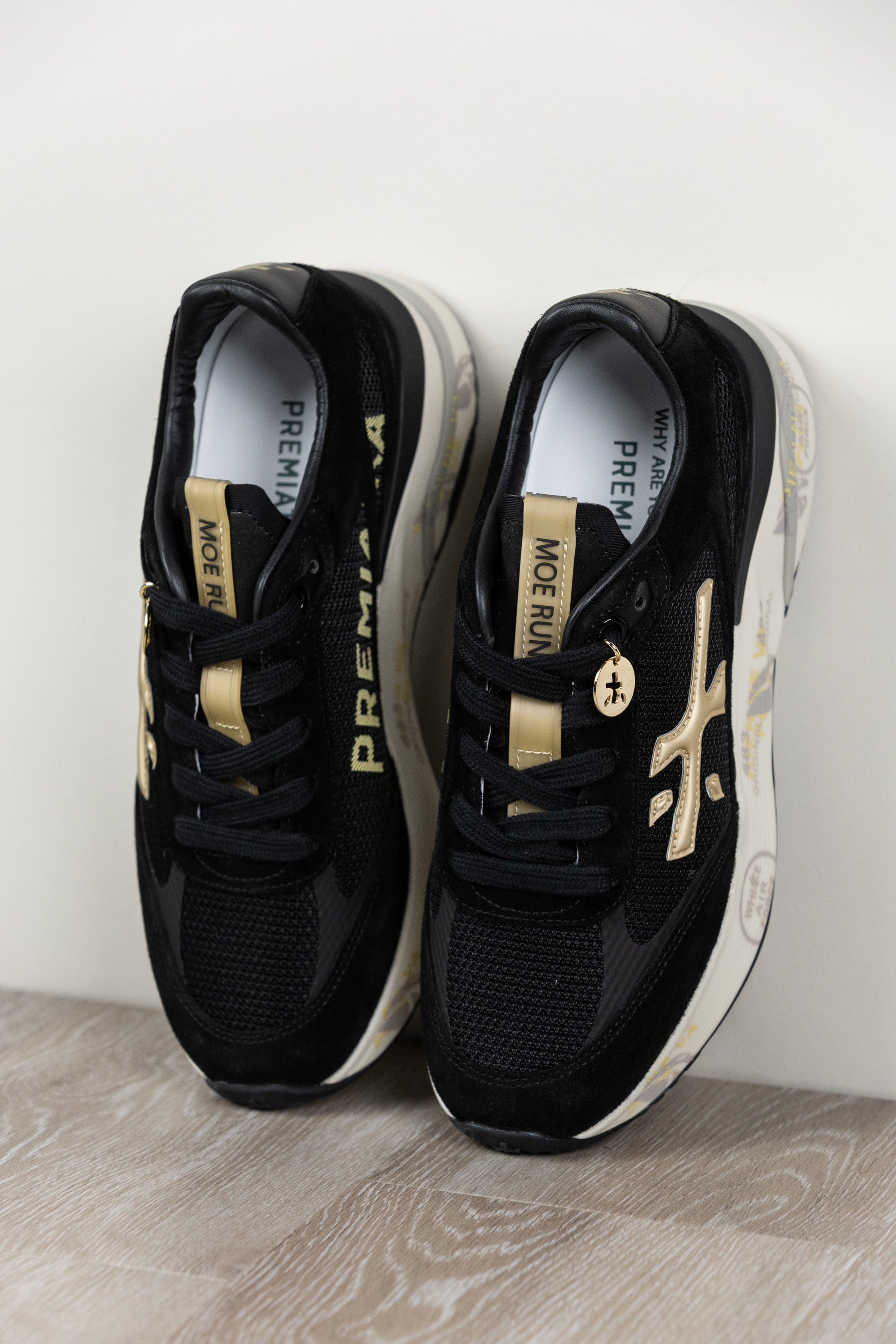 Ideate per stupire. La Moerun si basa sulla leggerezza del movimento, la stabilità e la sensazione ammortizzante data dall'innovazione del fondo. La nuova silhouette è ricca di dettagli: logo sul laterale esterno, scritta PREMIATA sul laterale interno, nome del modello sull'etichetta e interno foderato in montone.