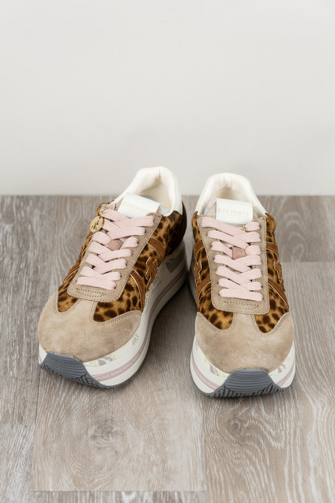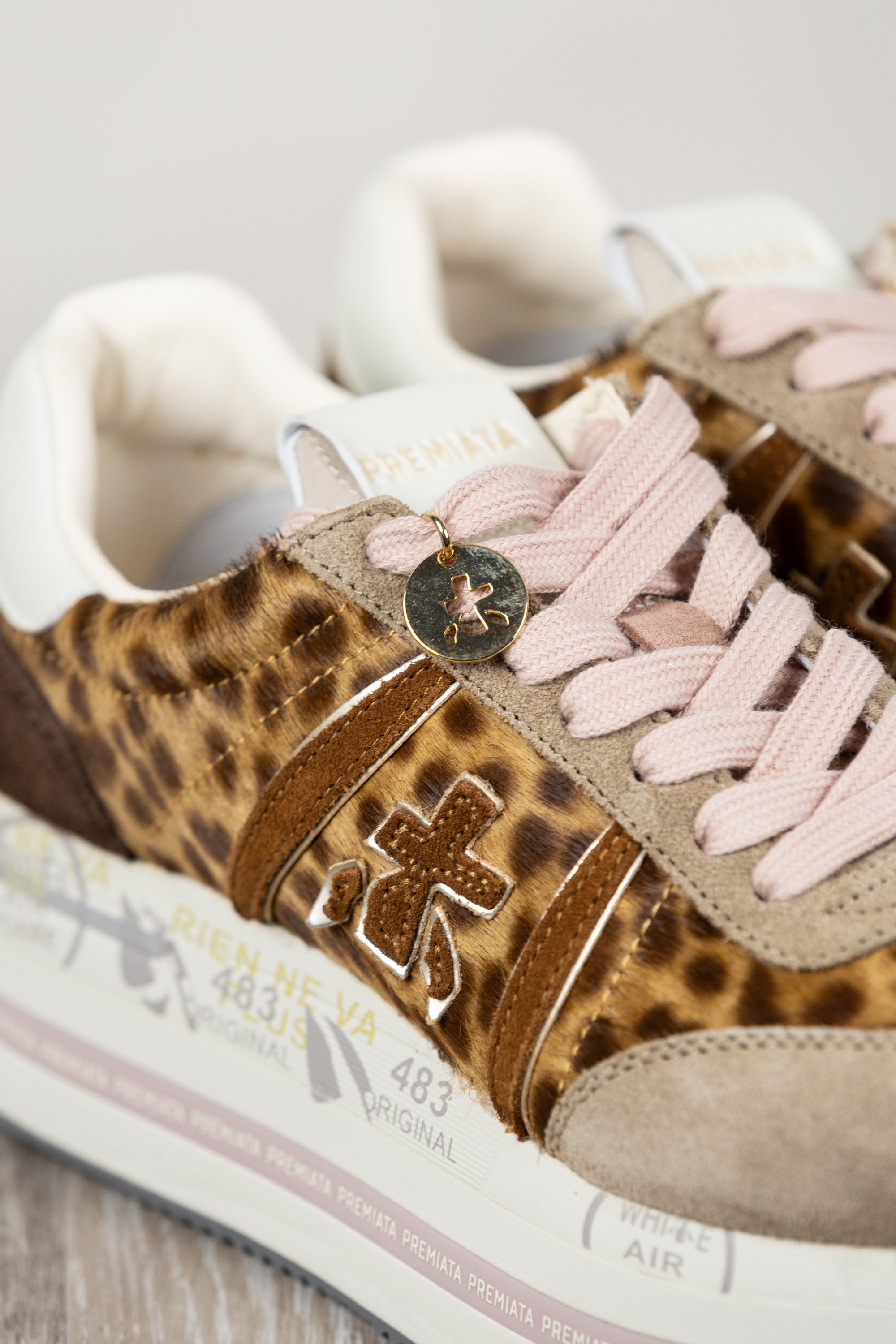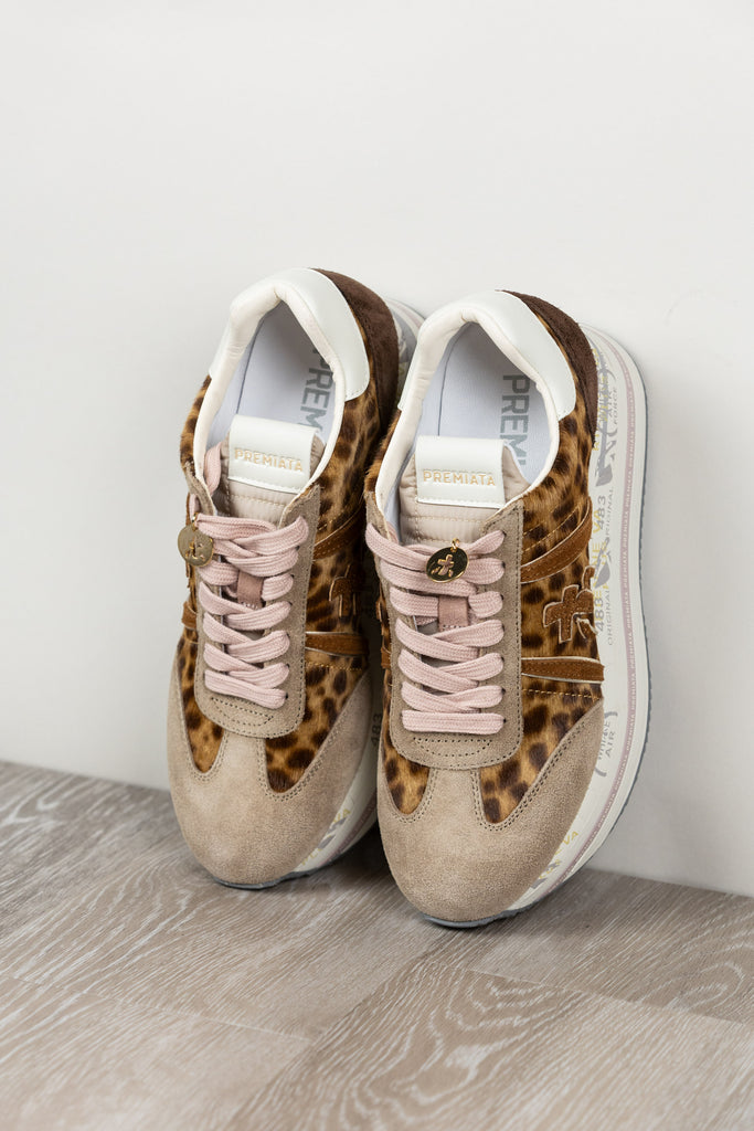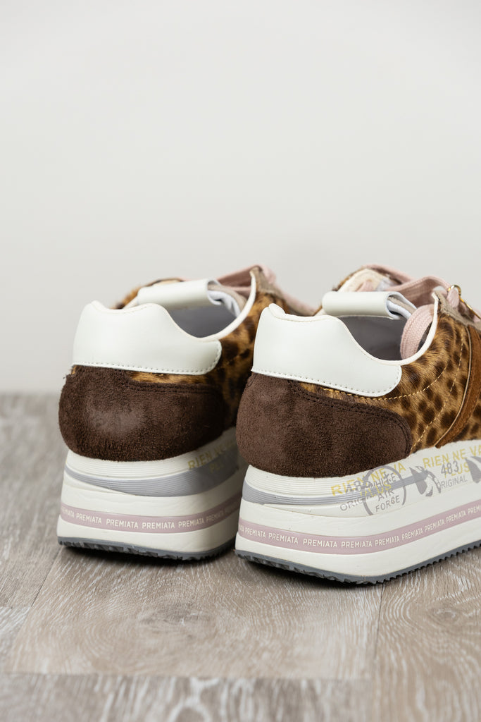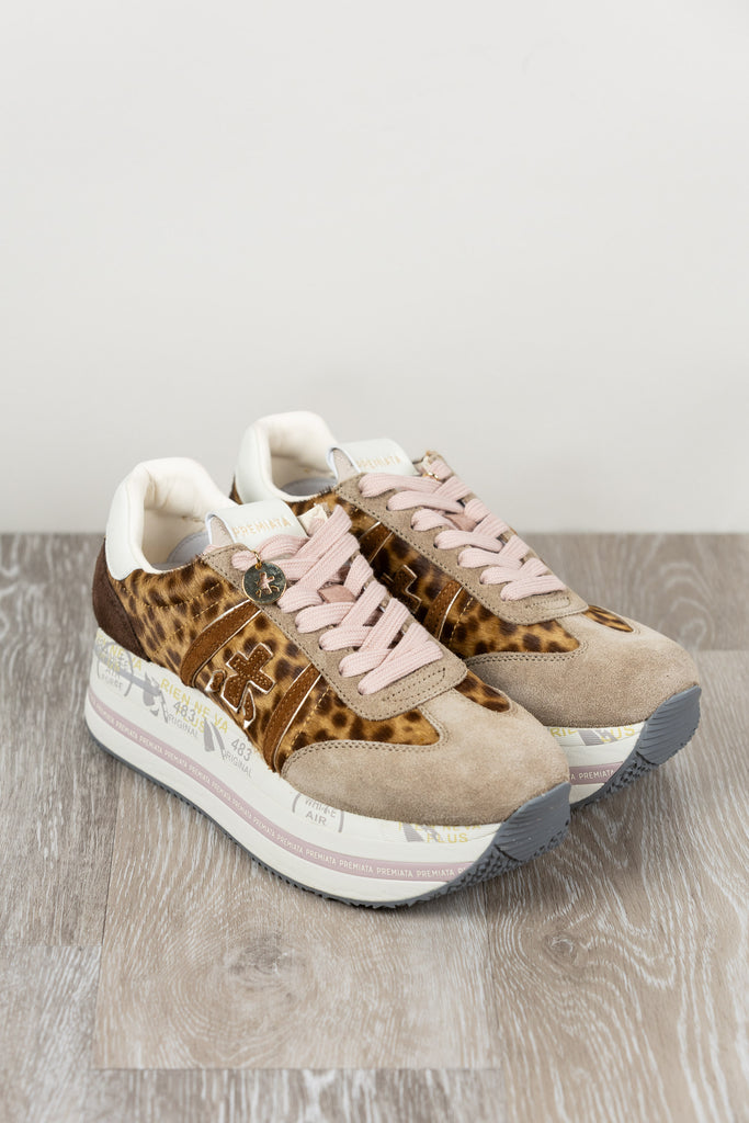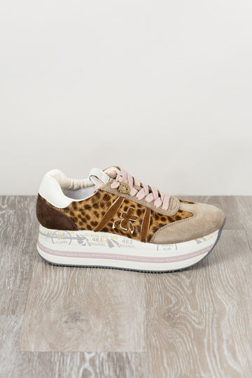 Beth con tomaia maculata in pelle, logo a contrasto e spoiler leopardato che aggiunge un tocco grintoso e originale. Design moderno e distintivo.