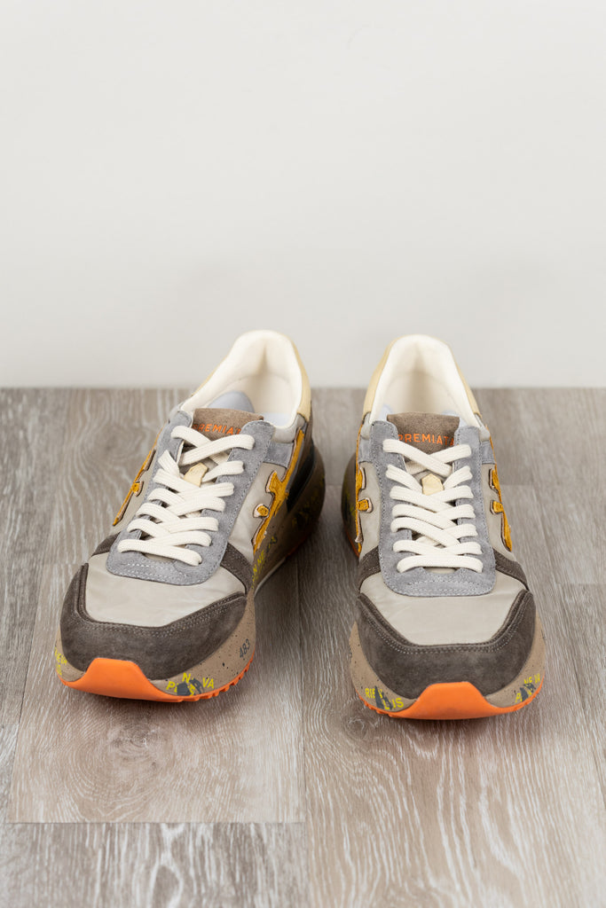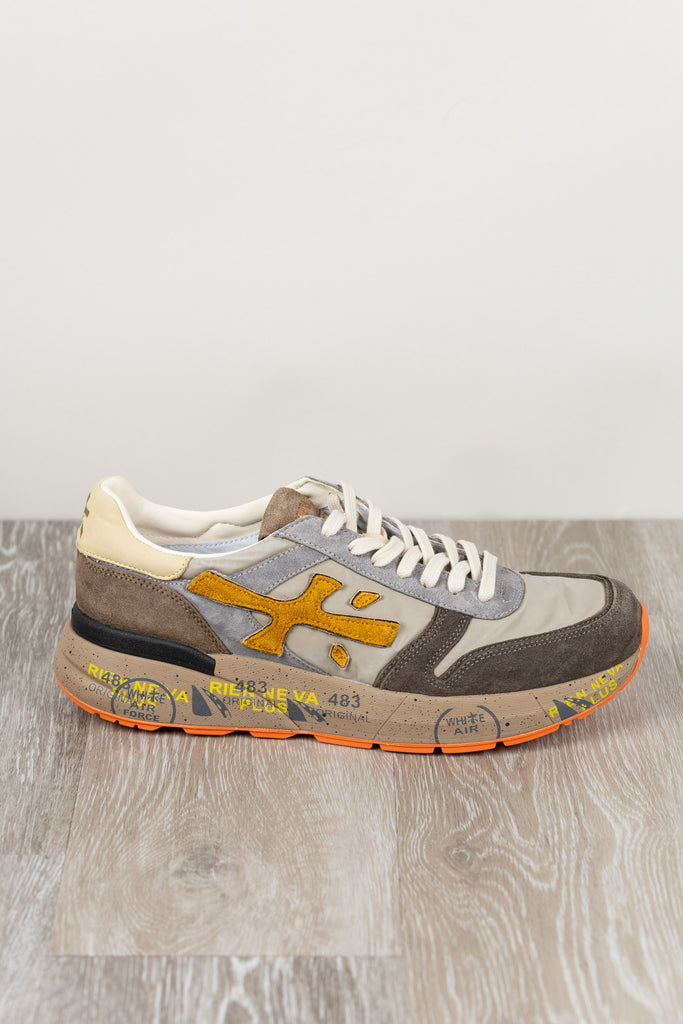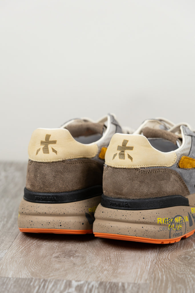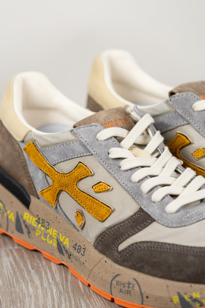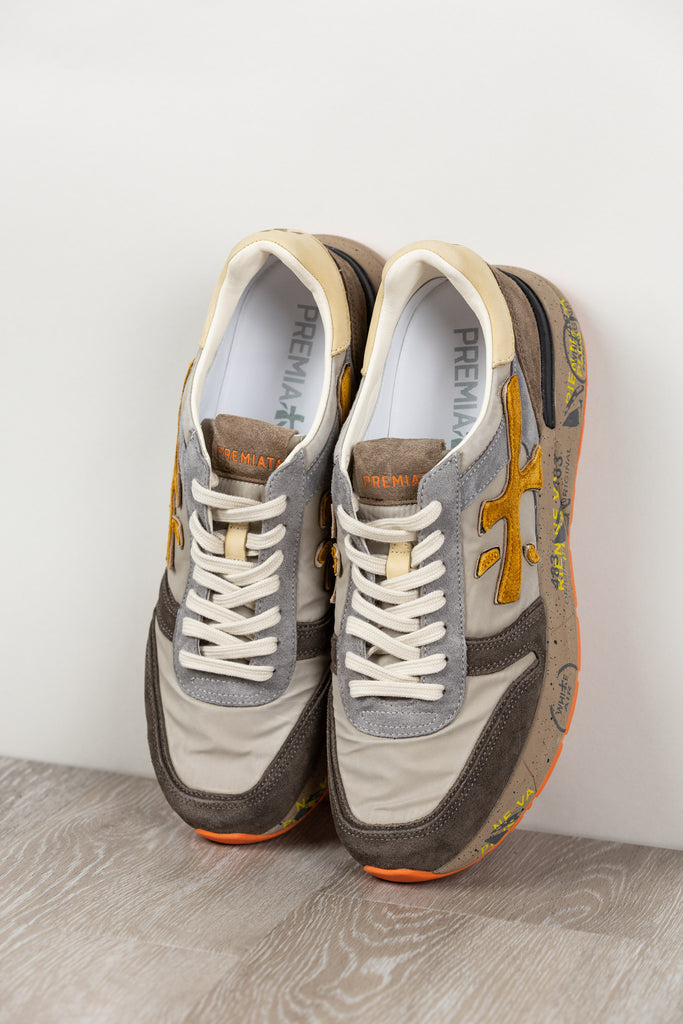 Sneakers Mick in mix di materiali e pellami di qualità. La scarpa è realizzata nella tonalità del marrone per uno stile casual. L'iconica silhouette è arricchita dal logo Premiata.