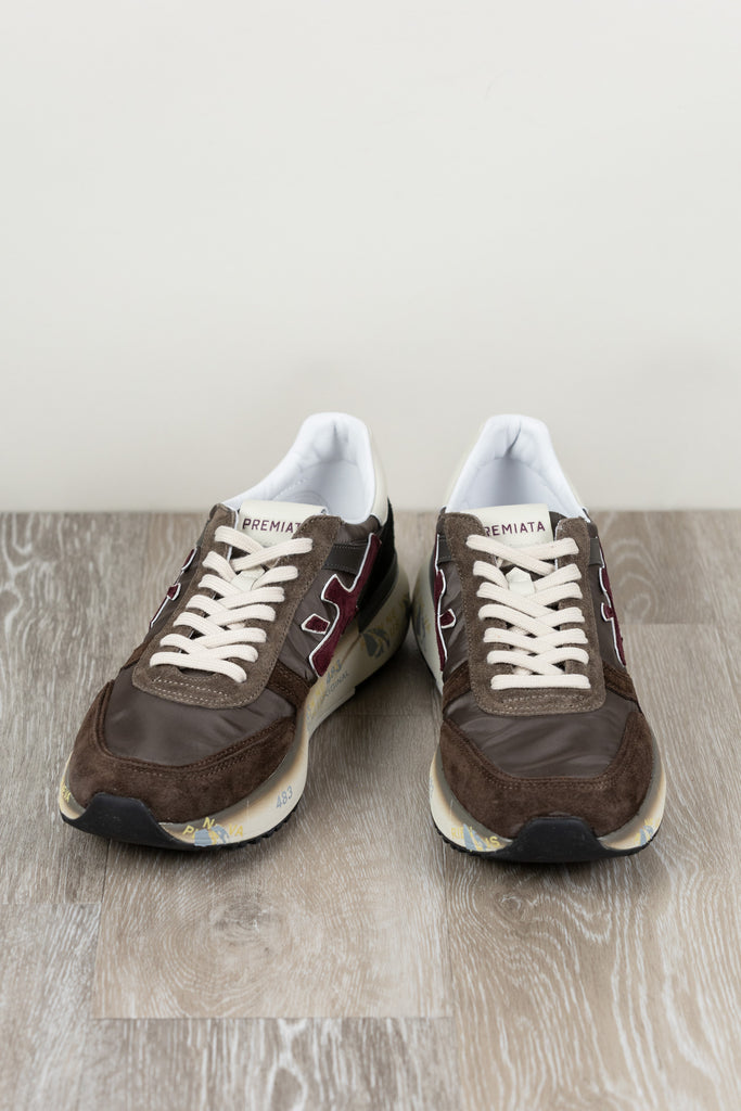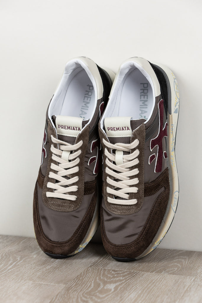 Sneakers Mick in mix di materiali e pellami di qualità. La scarpa è realizzata nella tonalità del marrone per uno stile casual. L'iconica silhouette è arricchita dal logo Premiata.