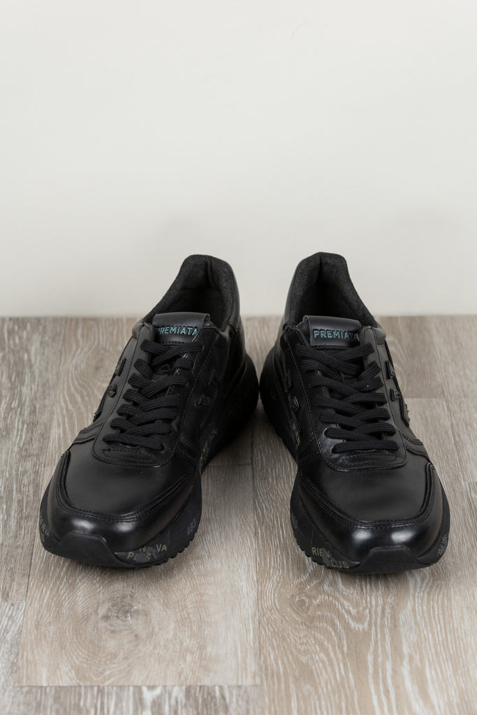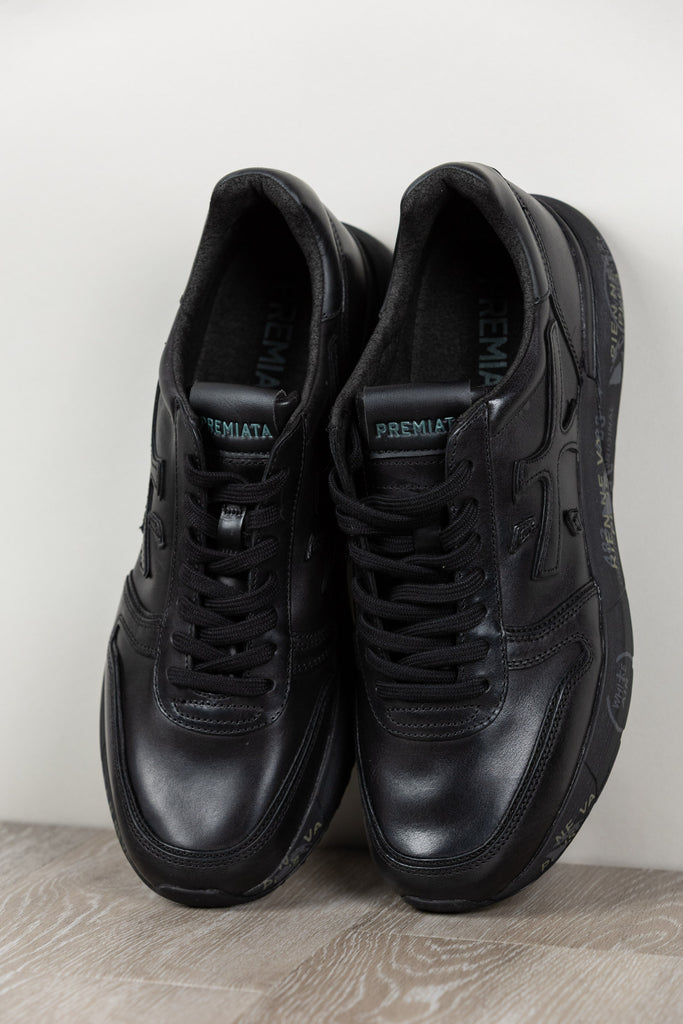 Sneakers Mick in mix di materiali e pellami di qualità. La scarpa è realizzata nella tonalità del nero per uno stile casual. L'iconica silhouette è arricchita dal logo Premiata.