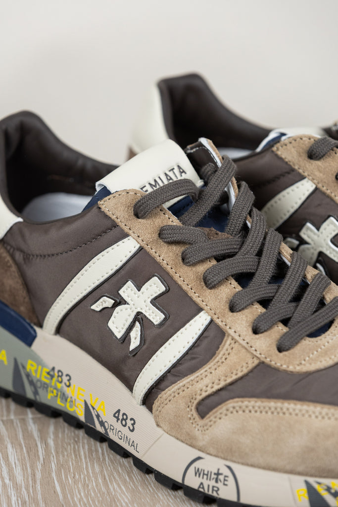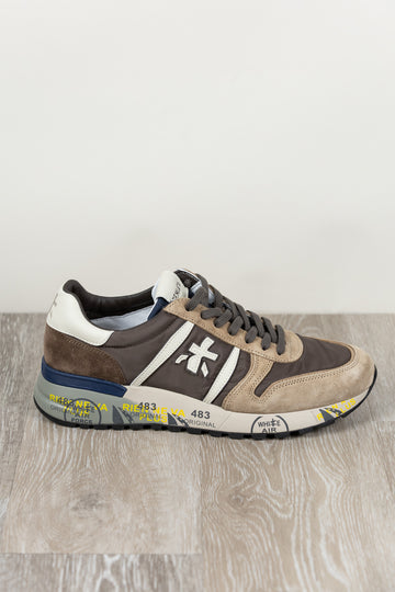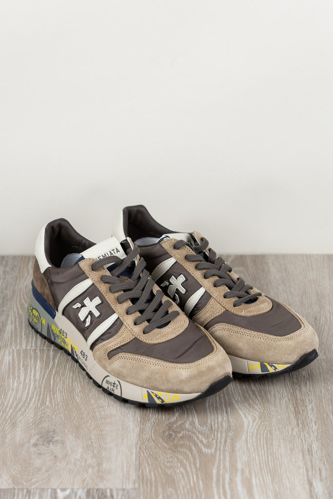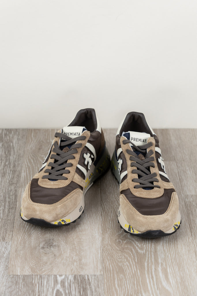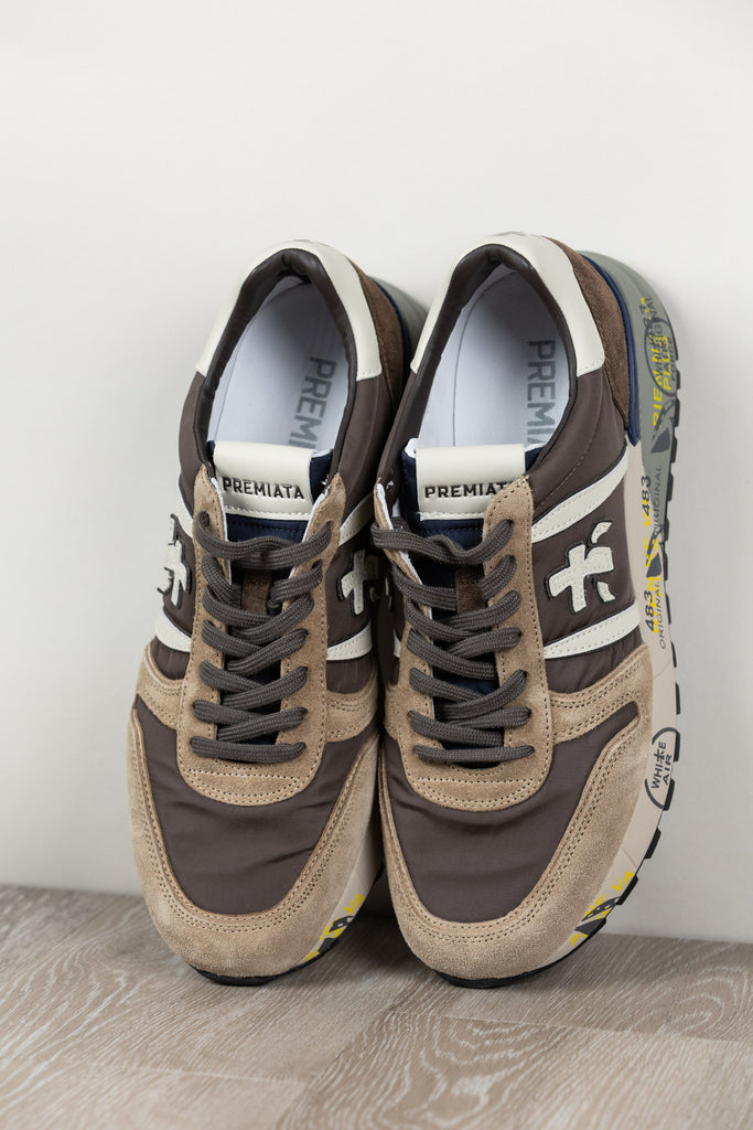 Sneakers Lander in pellame morbido scamosciato e nylon. Il look è arricchito dall’inconfondibile logo Premiata. Suola ergonomica e super leggera.