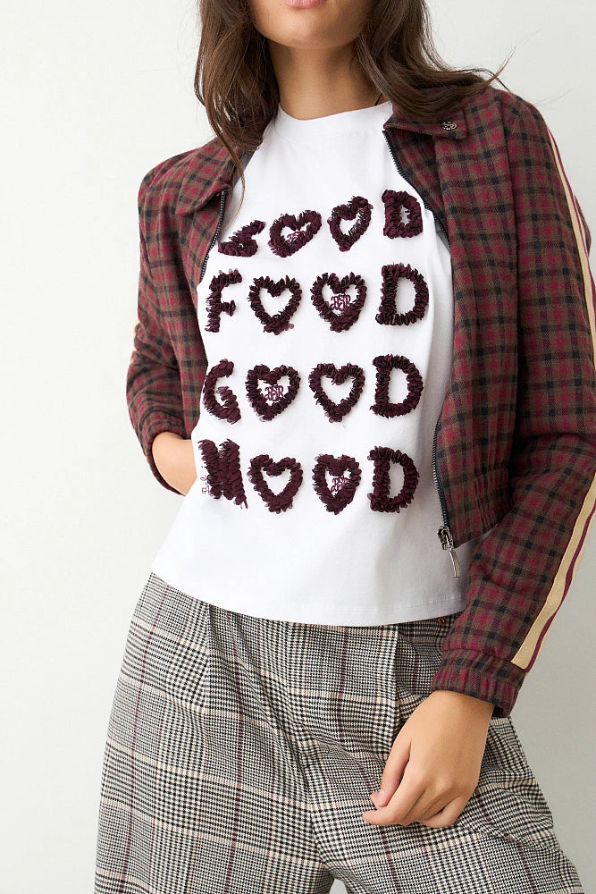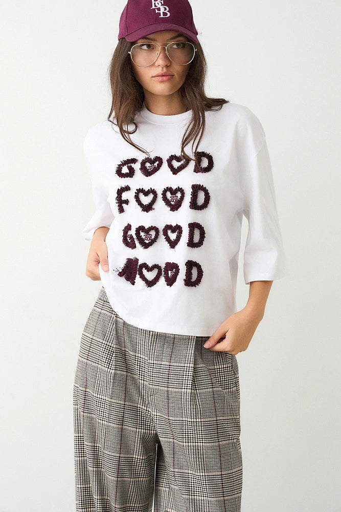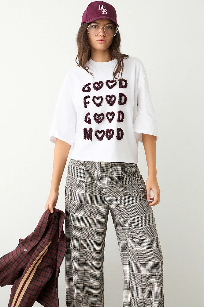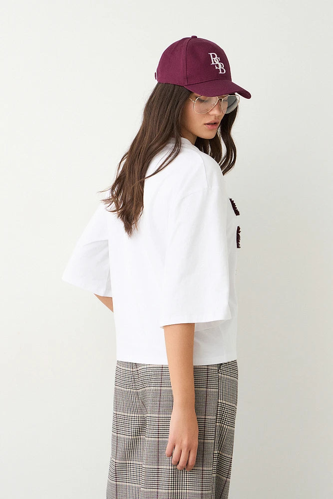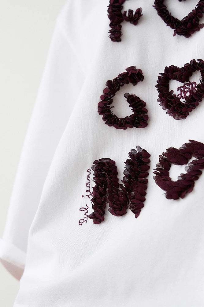 T-shirt con scollo rotondo, stampa in rilievo, vestibilità regolare, cotone