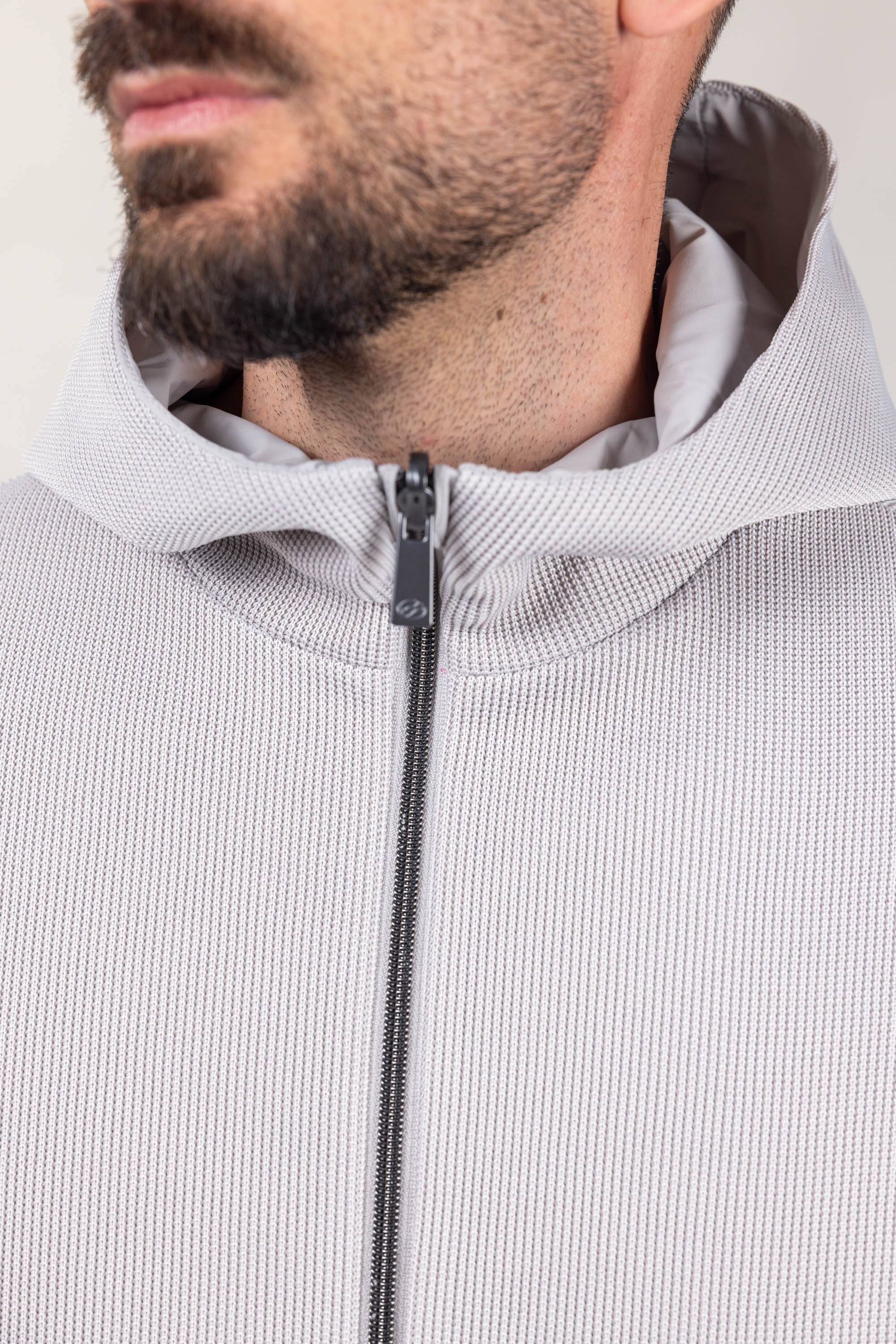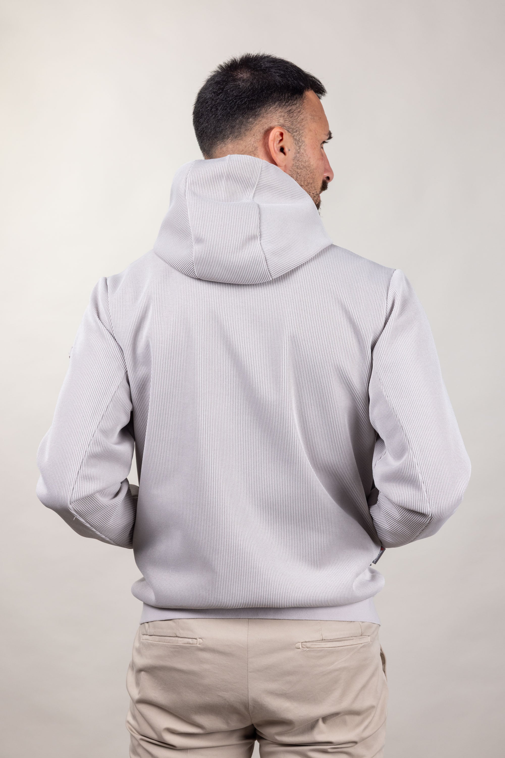 Iconico tessuto a maglia ingegnerizzato, realizzato in una fibra in poliestere riciclato mechanical stretch di nuova generazione, al quale viene accoppiata una speciale Membrana che garantisce traspirabilità e Impermeabilità fino a 5000 colonne d’acqua. E’ sviluppato appositamente per coniugare il peso e il comfort di una maglia seppure garantendo le funzionalità protettive e la tecnicità di un capo outdoor.